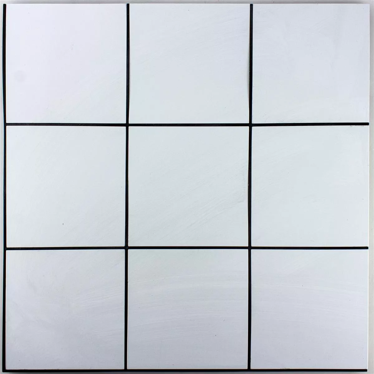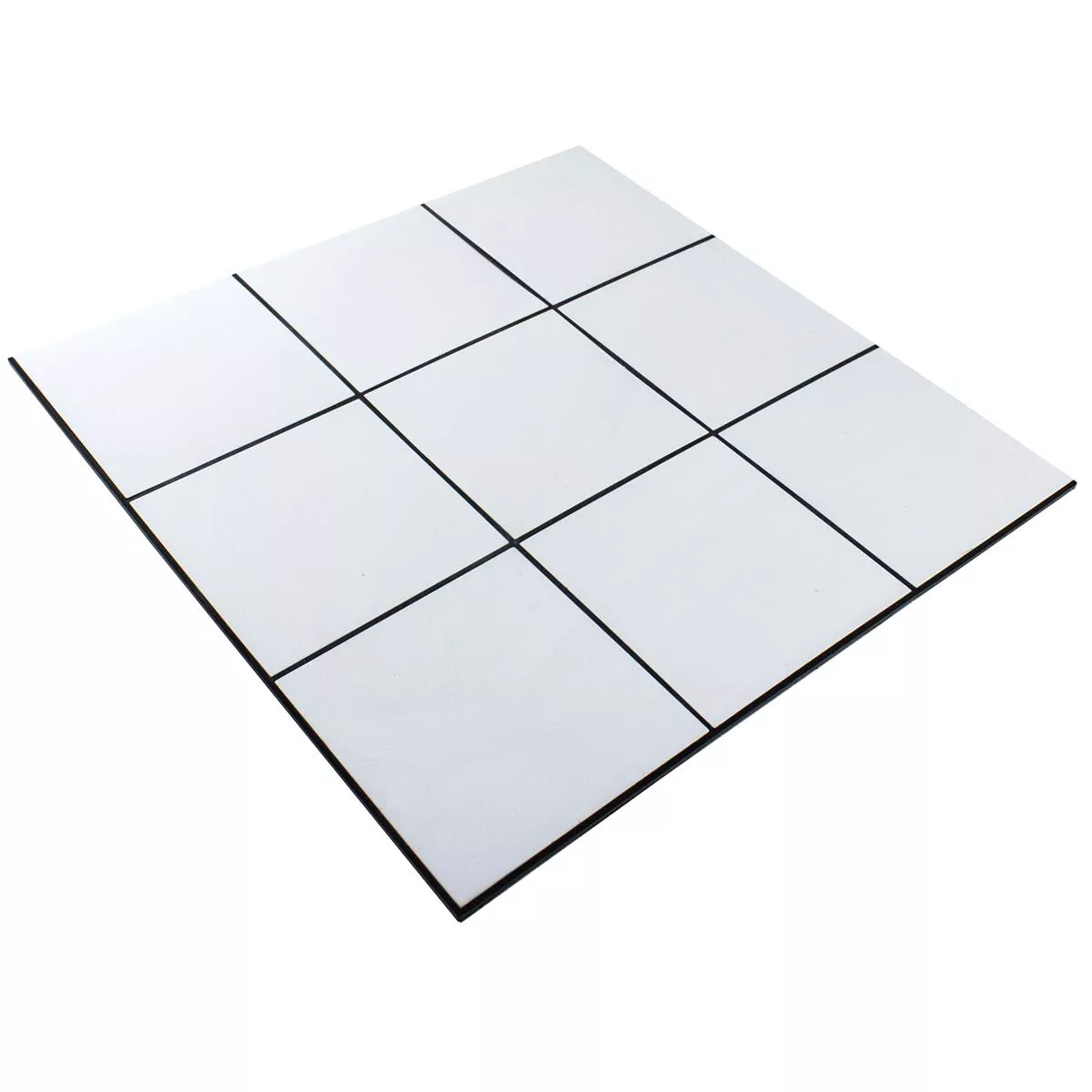 The square tiles measure 100x100 mm and are 4 mm thick, making them stable and easy to handle at the same time. The tiles are arranged on mats that cover an area of 30.6x30.6 cm and total 0.094 m² per mat. This structure makes it easy to lay them on walls in different rooms.