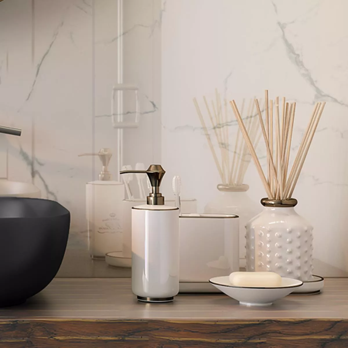 Die Ampezzo Calacatta Fliesen vereinen die Schönheit von Naturstein mit den praktischen Vorteilen von Feinsteinzeug. Ihre polierte, glänzende Oberfläche in Marmoroptik schafft eine luxuriöse Atmosphäre, während die Kombination aus Weiß und Grau zeitlose Eleganz ausstrahlt. Perfekt für alle, die einen exklusiven Look mit hoher Funktionalität suchen.
