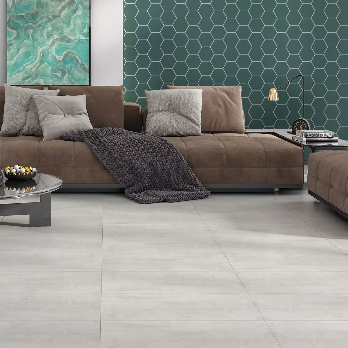 Sie eignet sich vor allem für den Einsatz in einem Badezimmer, da sie zusammen mit einer Fußbodenheizung verwendet werden kann. Doch auch andere Innenräume des Zuhauses profitieren von den weißen Herion Bodenfliese in Metalloptik.