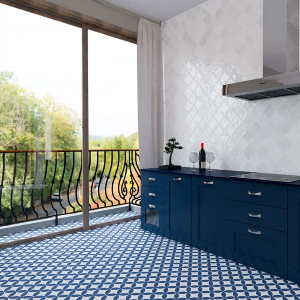 Verleihen Sie Ihren Räumen mit den Feinsteinzeug Fliesen Florentino in Blau einen Hauch von mediterranem Flair und Eleganz. Diese quadratischen Fliesen mit den Maßen 22,5x22,5 cm und einer Stärke von 9mm bestechen durch ihre wunderschöne Blumenoptik und sind eine exzellente Wahl für jeden Innenbereich.