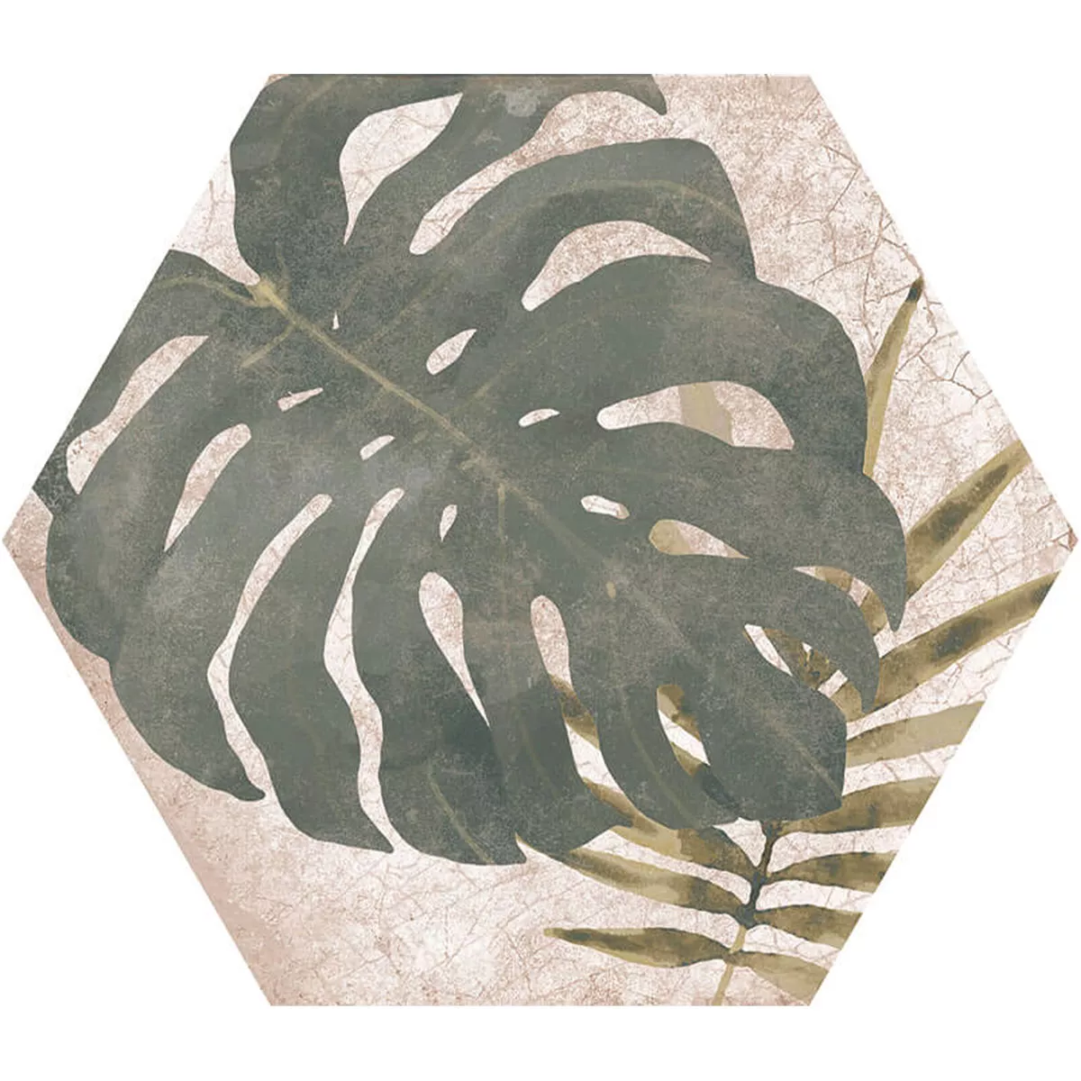 Feinsteinzeug Fliesen Honiara Hexagon Dekor Grün 22,5x25,9cm Dekor