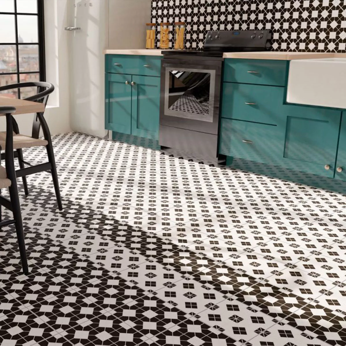 Die Feinsteinzeug Fliesen Murcia 22,5x22,5cm Weiß verleihen Ihrem Innenbereich eine harmonische Mischung aus Schwarz und Weiß. Die matte Oberfläche und eine Stärke von 9mm verleihen ihnen eine robuste Struktur.