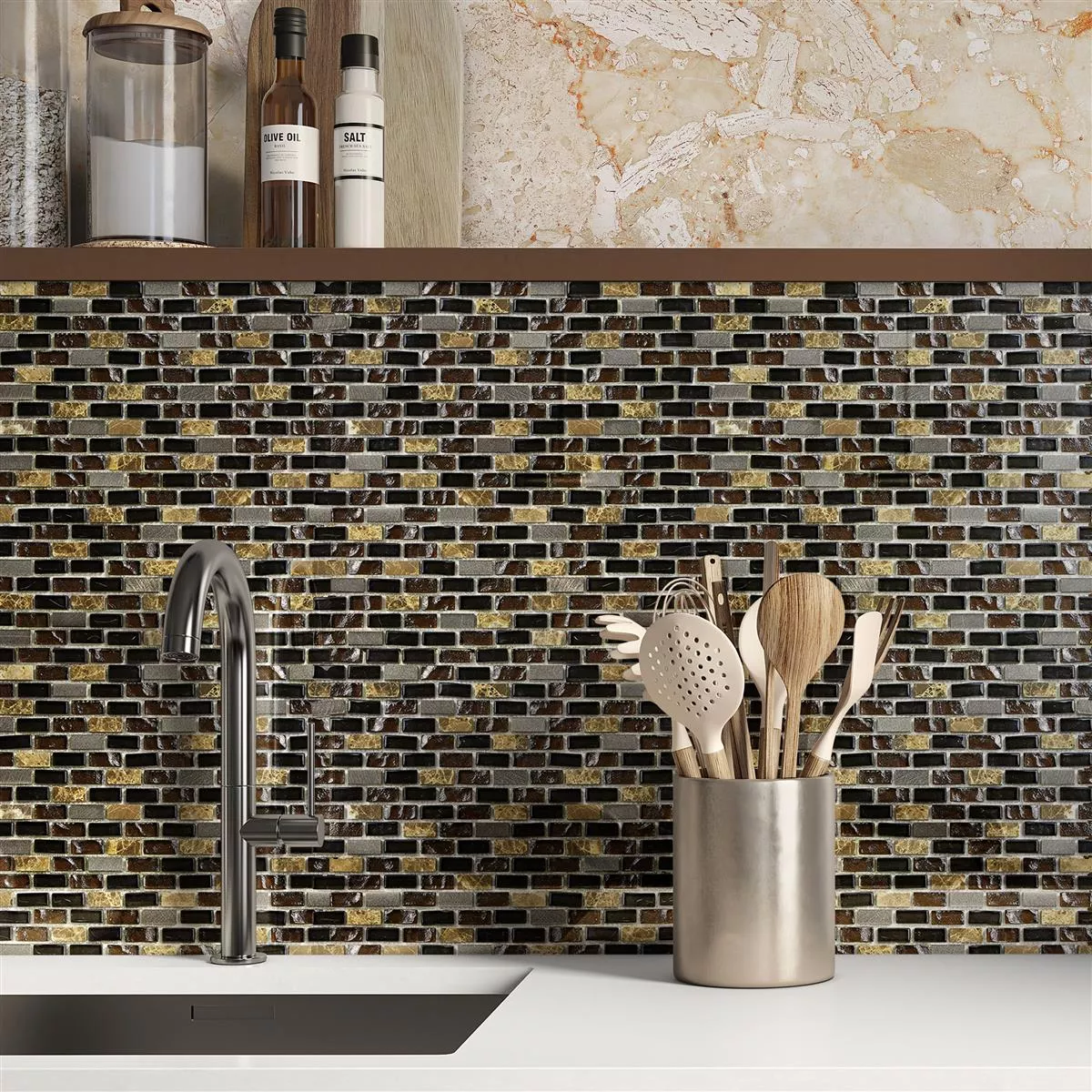 Glas Marmor Aluminium Mosaikfliesen Patterson Braun Mix