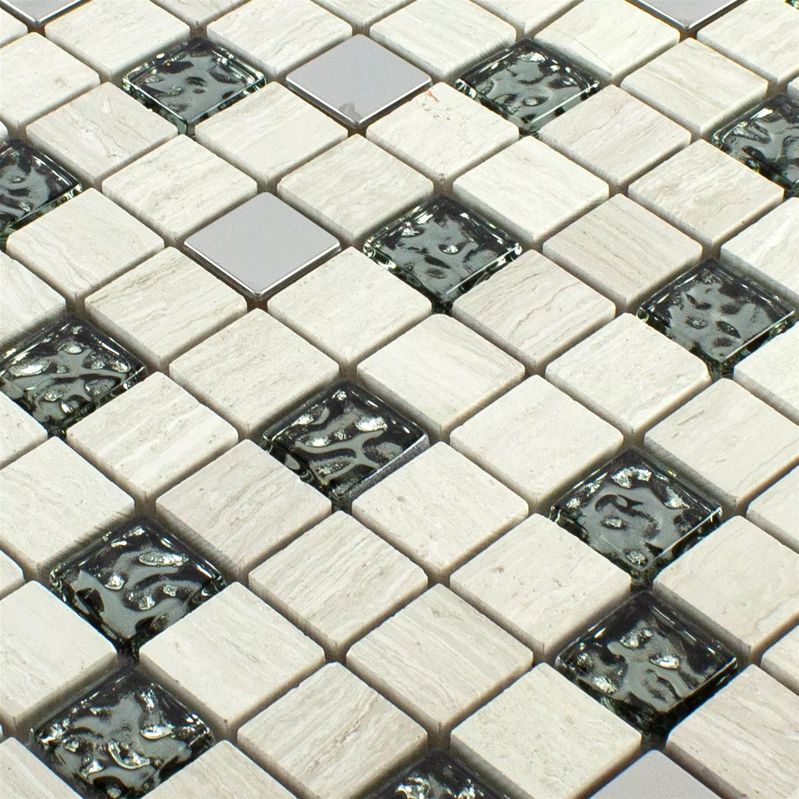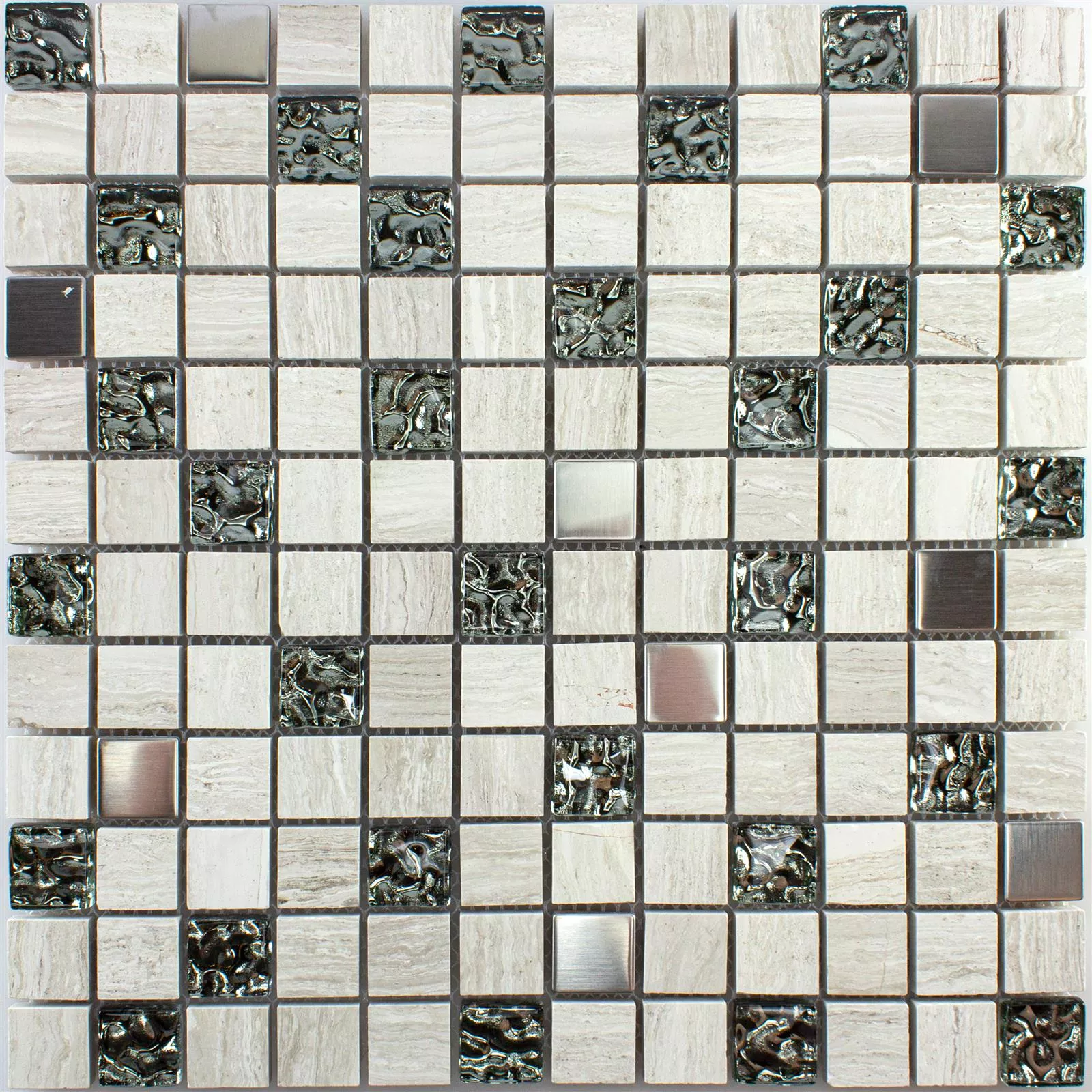 Glas Naturstein Metall Mosaikfliese Fulda Grau Silber