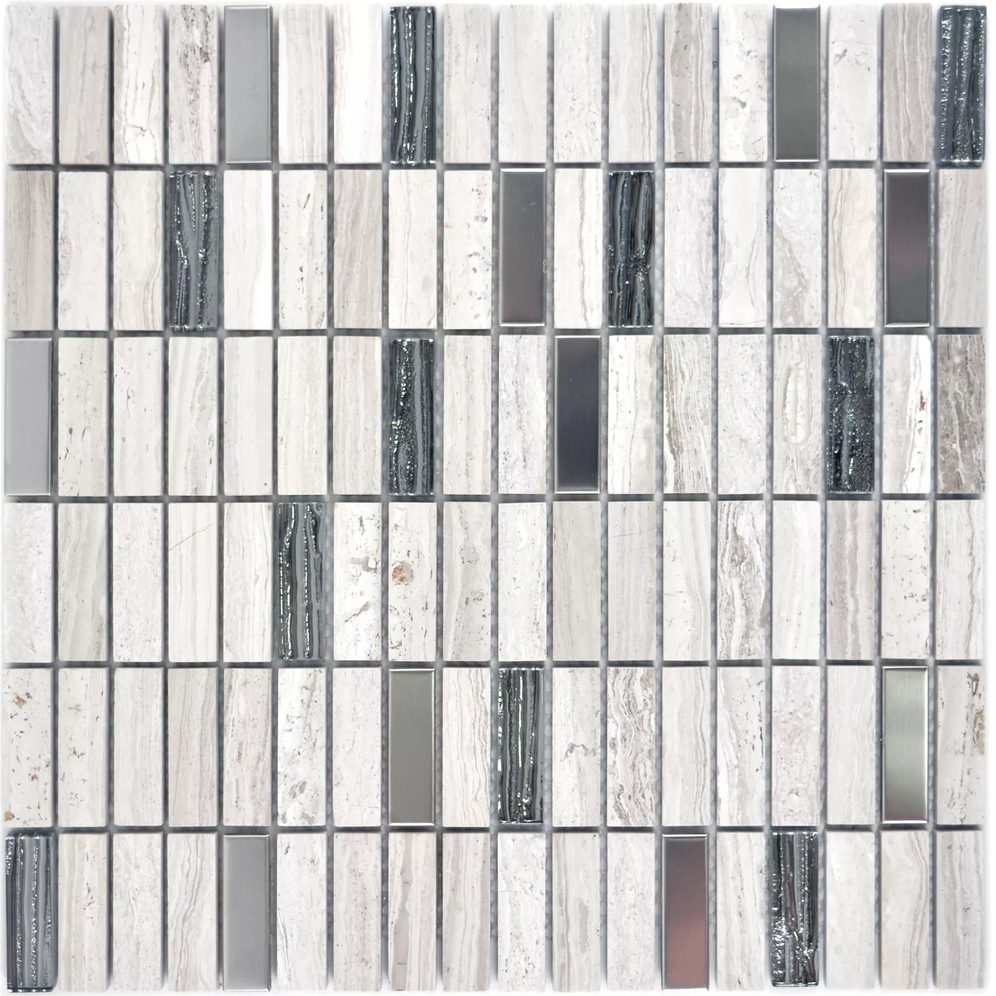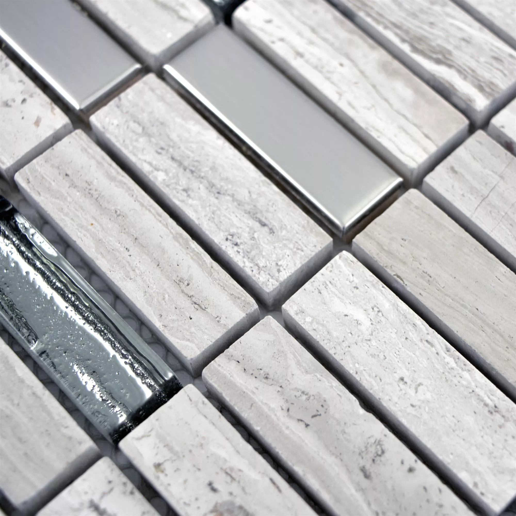 Glas Stein Stahl Mosaikfliesen Elektra Grau Stäbchen
