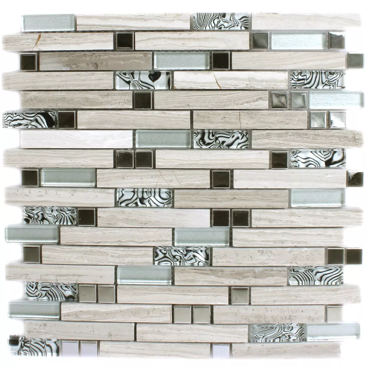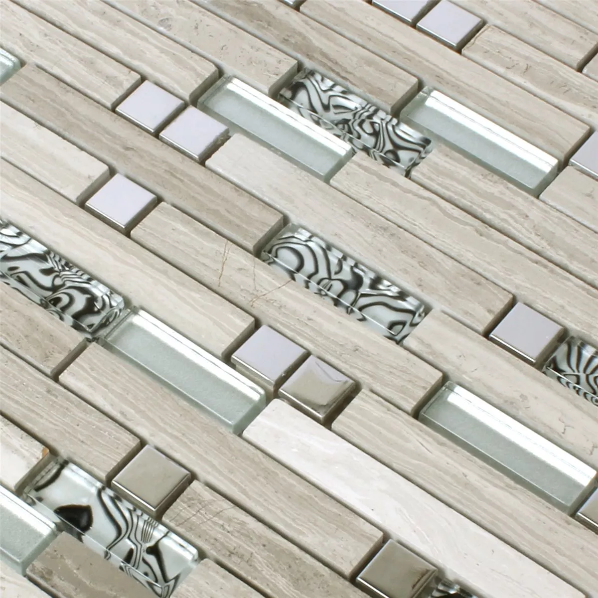 Metall Glas Naturstein Mosaikfliesen Tinkabell Grau Silber Mix