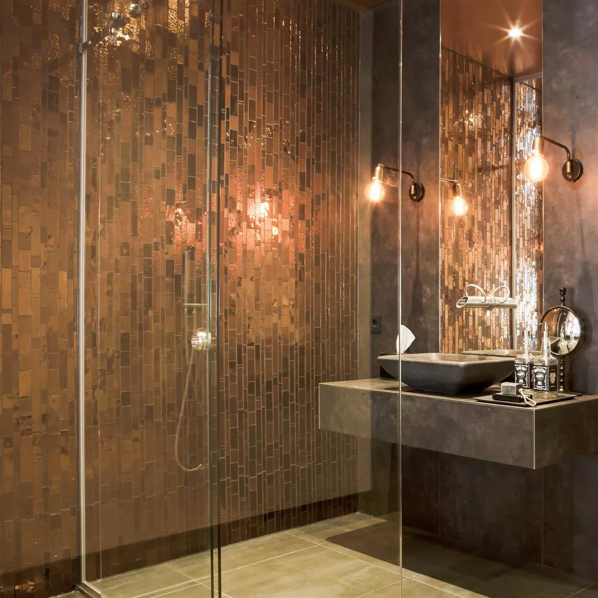 Wer auch bei der Ausstattung eines Wohnraums Wert auf individuellen Stil, hochwertiges Material und trendigen Look legt, sollte die Glasmosaik Fliesen Metropolis in Amber kennen lernen. Diese Fliese aus Glasmosaik wird von dem berühmten und renommierter italienische Hersteller von Glaskeramik, der Firma Trend-Vi, hergestellt. Böden, die mit Glasmosaik ausgestattet wurden, haben eine besonders edle Ausstrahlung, sind aber ähnlich pflegeleicht und belastbar wie andere Fliesenböden.Die Mosaikfliesen werden als Stäbchen in einer Stärke von 4 mm angeboten, die Mattengröße ist 30,8x28,8cm.