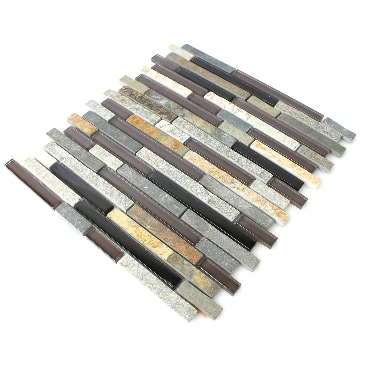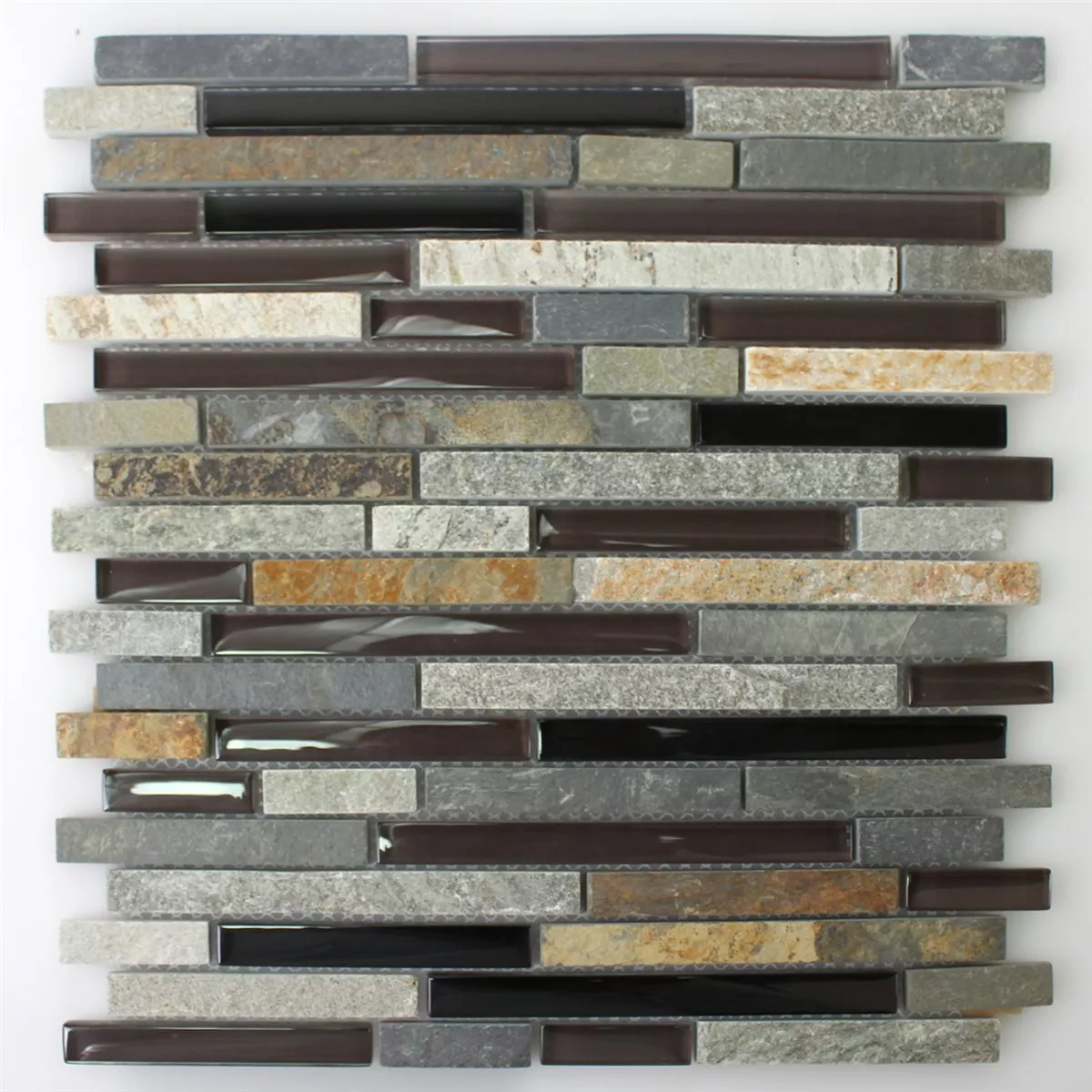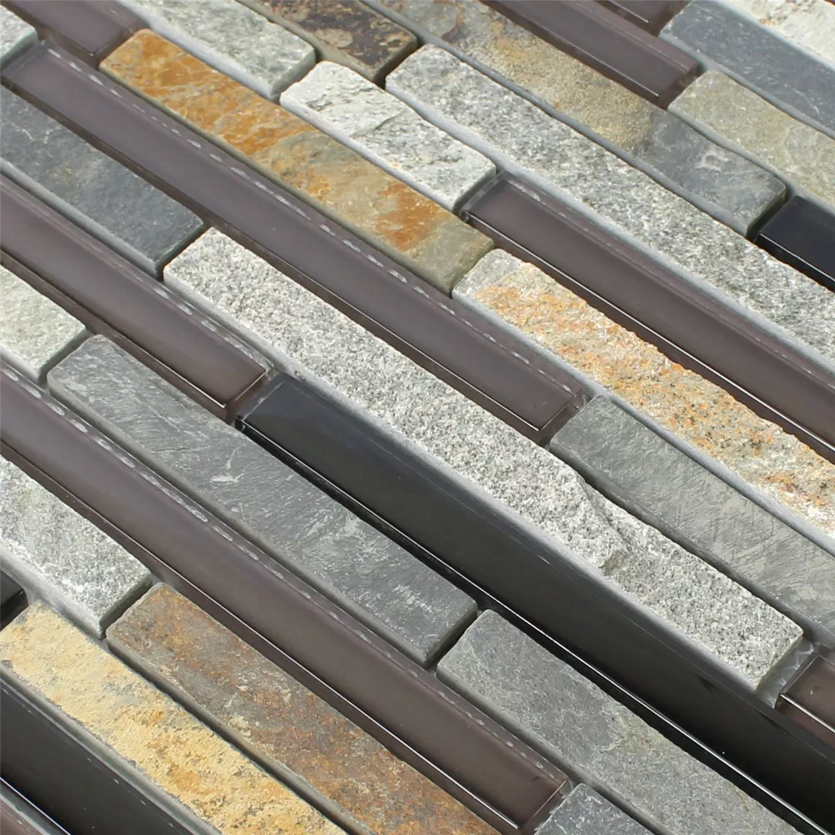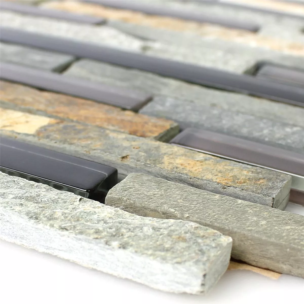 Muster Glas Quarzit Naturstein Mosaikfliesen Abracadabra Grau Braun Mix