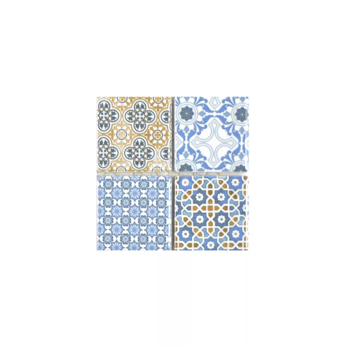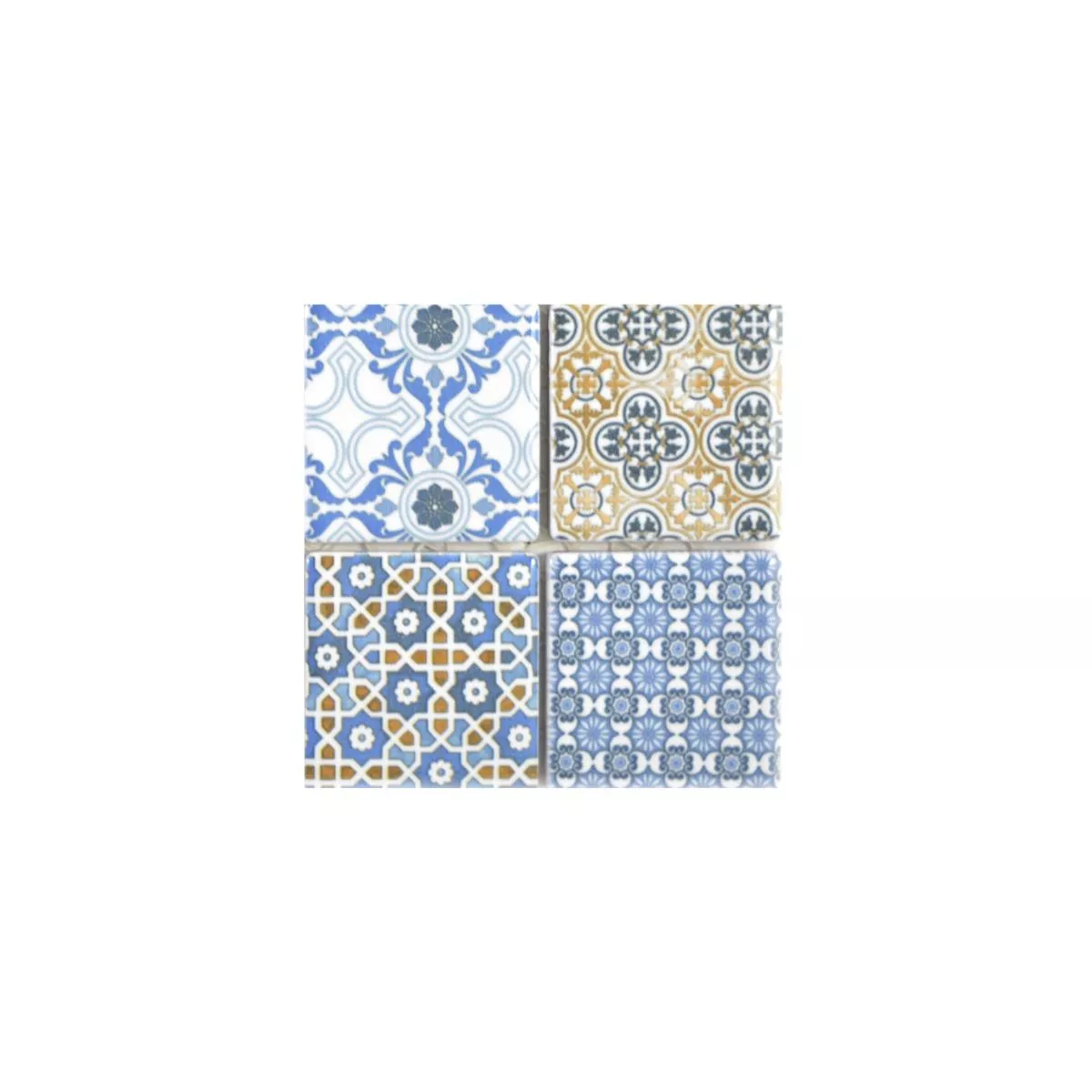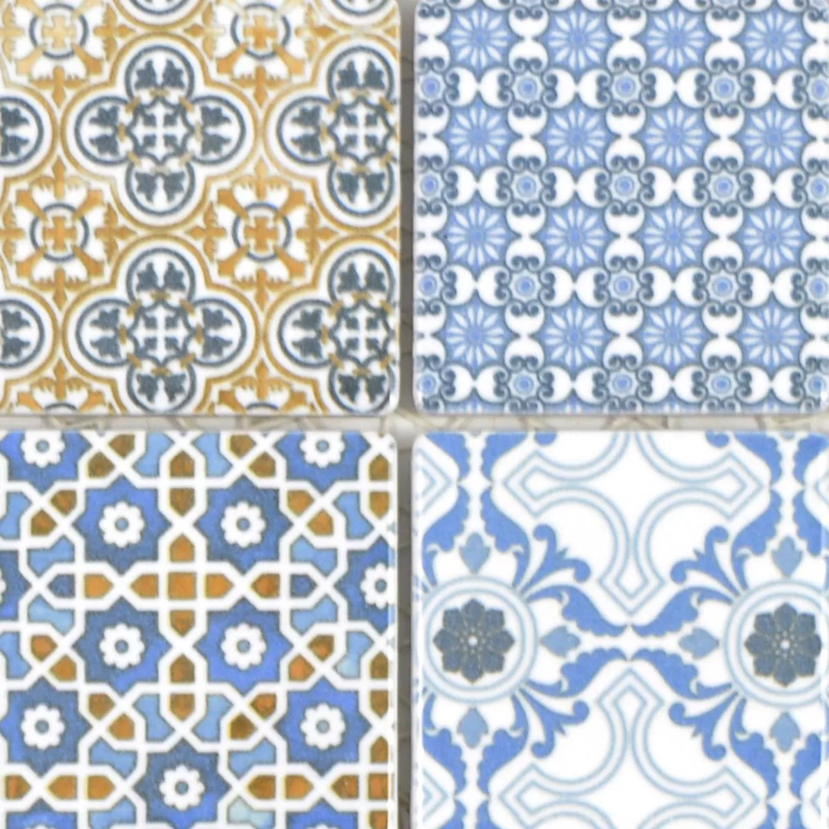 Muster von Keramik Mosaikfliesen Daymion Retrooptik Quadrat Blau Braun 47