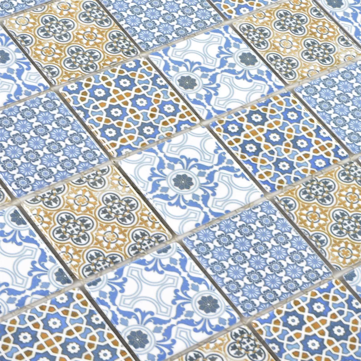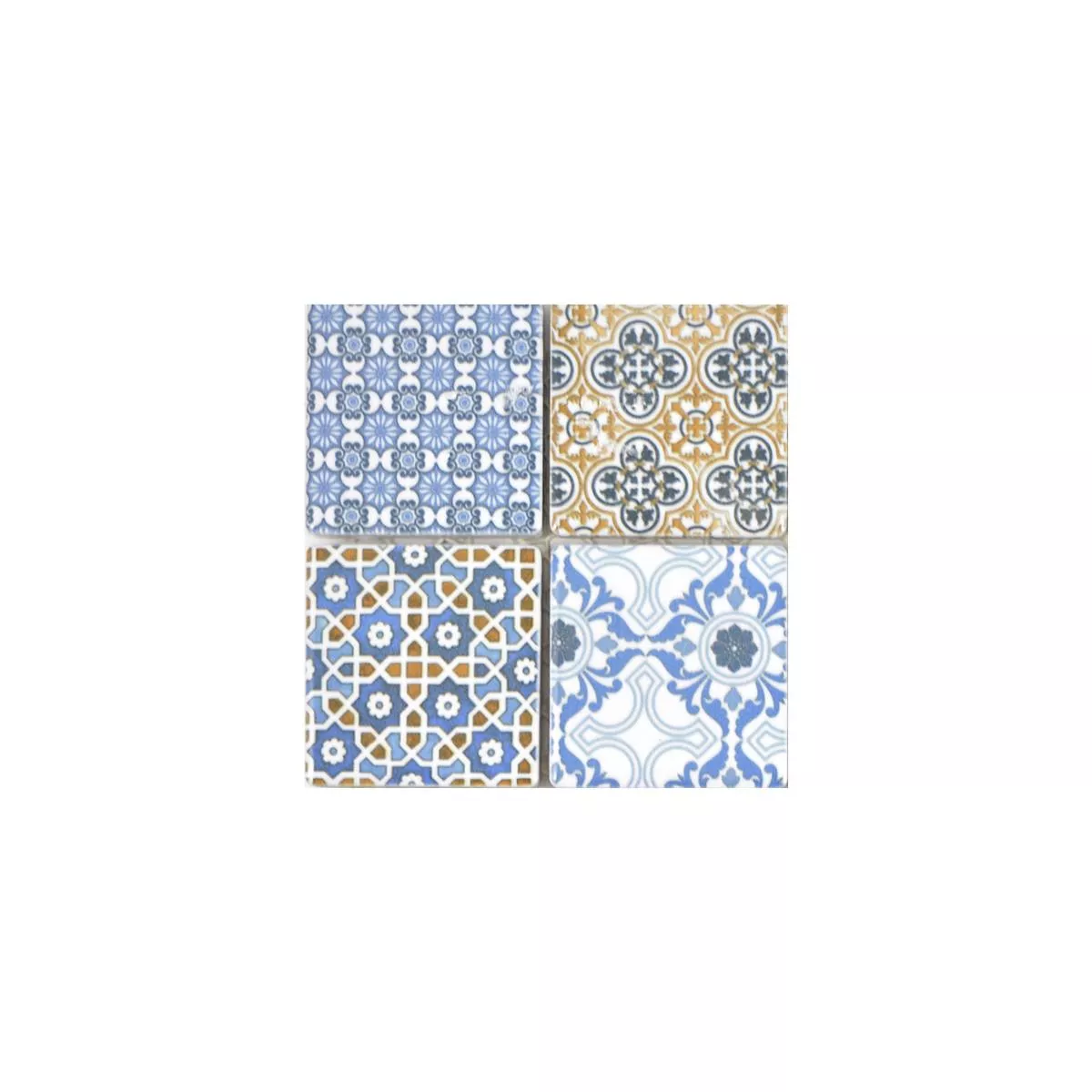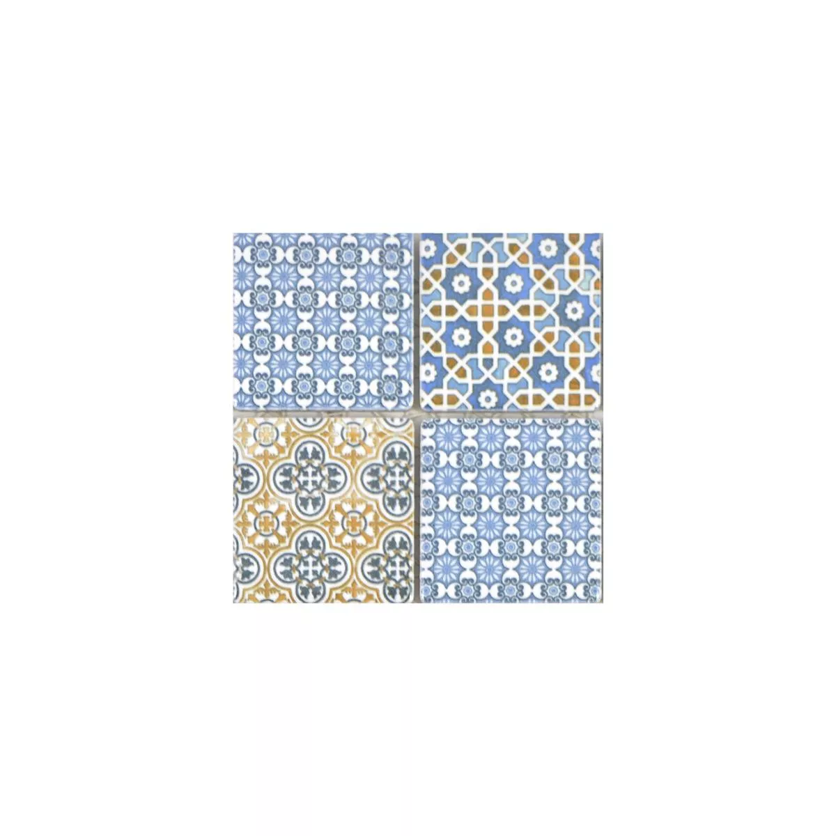 Muster von Keramik Mosaikfliesen Daymion Retrooptik Quadrat Blau Braun 47