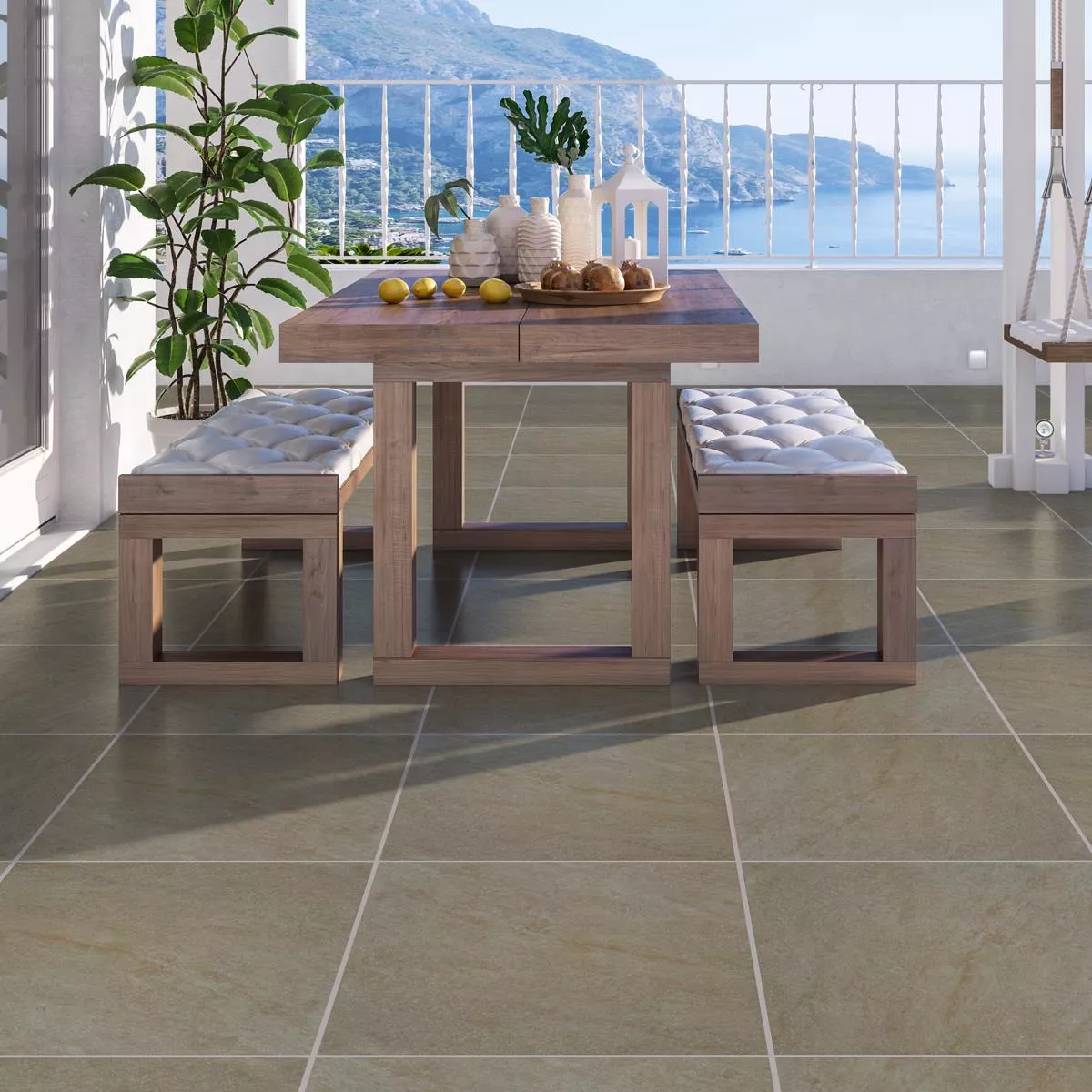- Material: Feinsteinzeug ist ein hochwertiges Keramikmaterial, das aus natürlichen Rohstoffen wie Ton, Feldspat und Quarz hergestellt wird. Es ist extrem hart und bruchsicher und daher ideal für den Einsatz im Außenbereich geeignet.