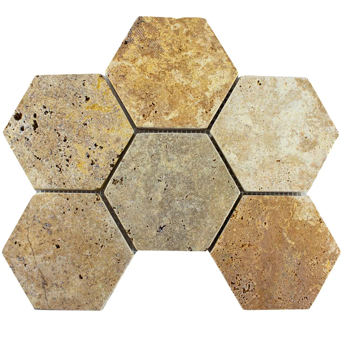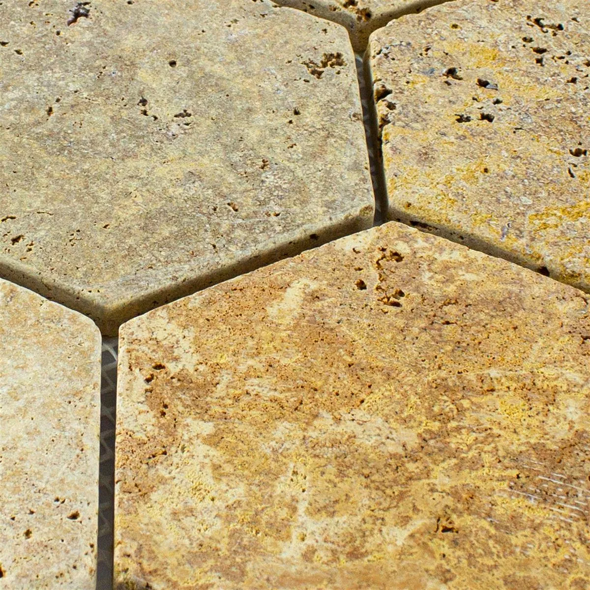 Travertin Naturstein Mosaikfliesen Mercado Sechseck Gold