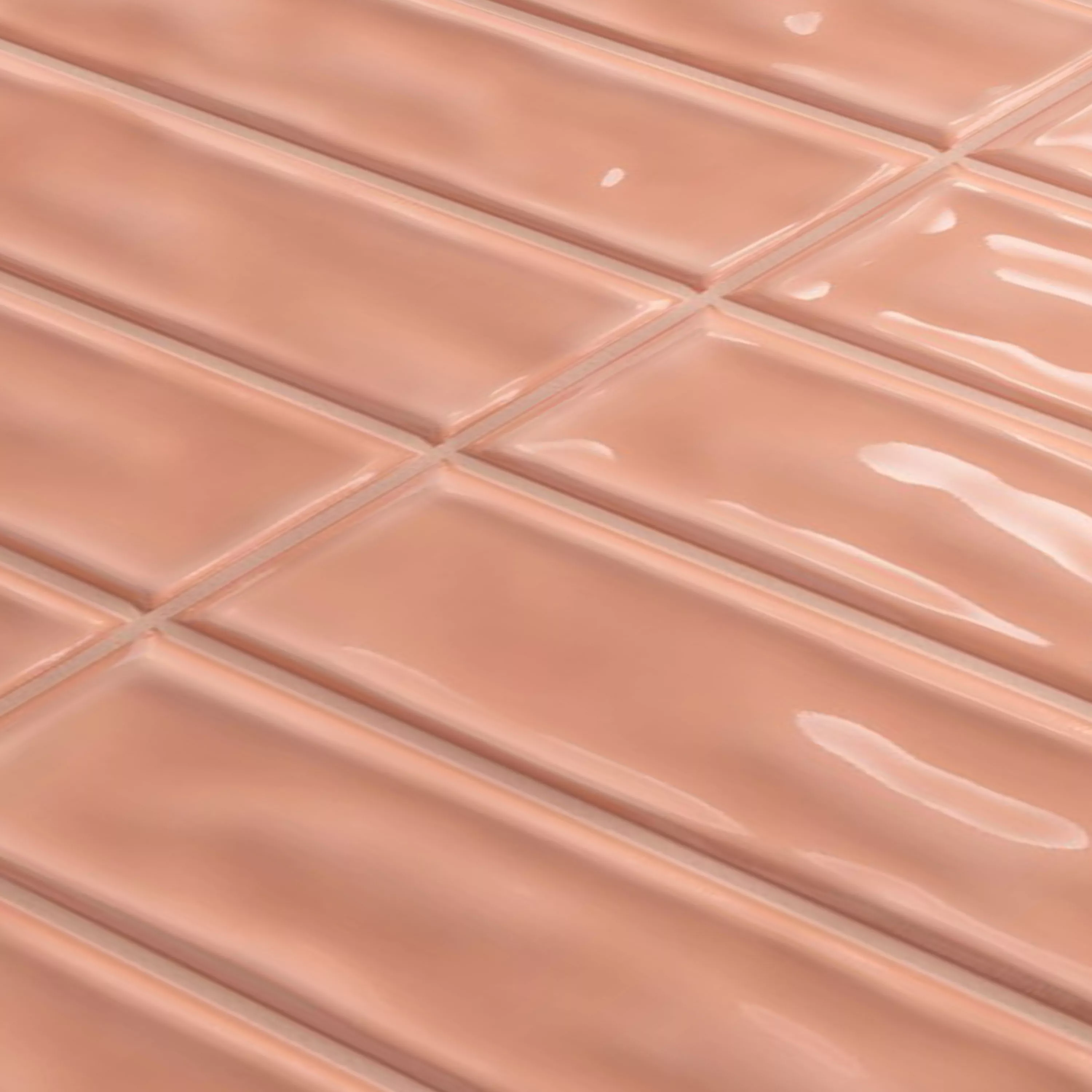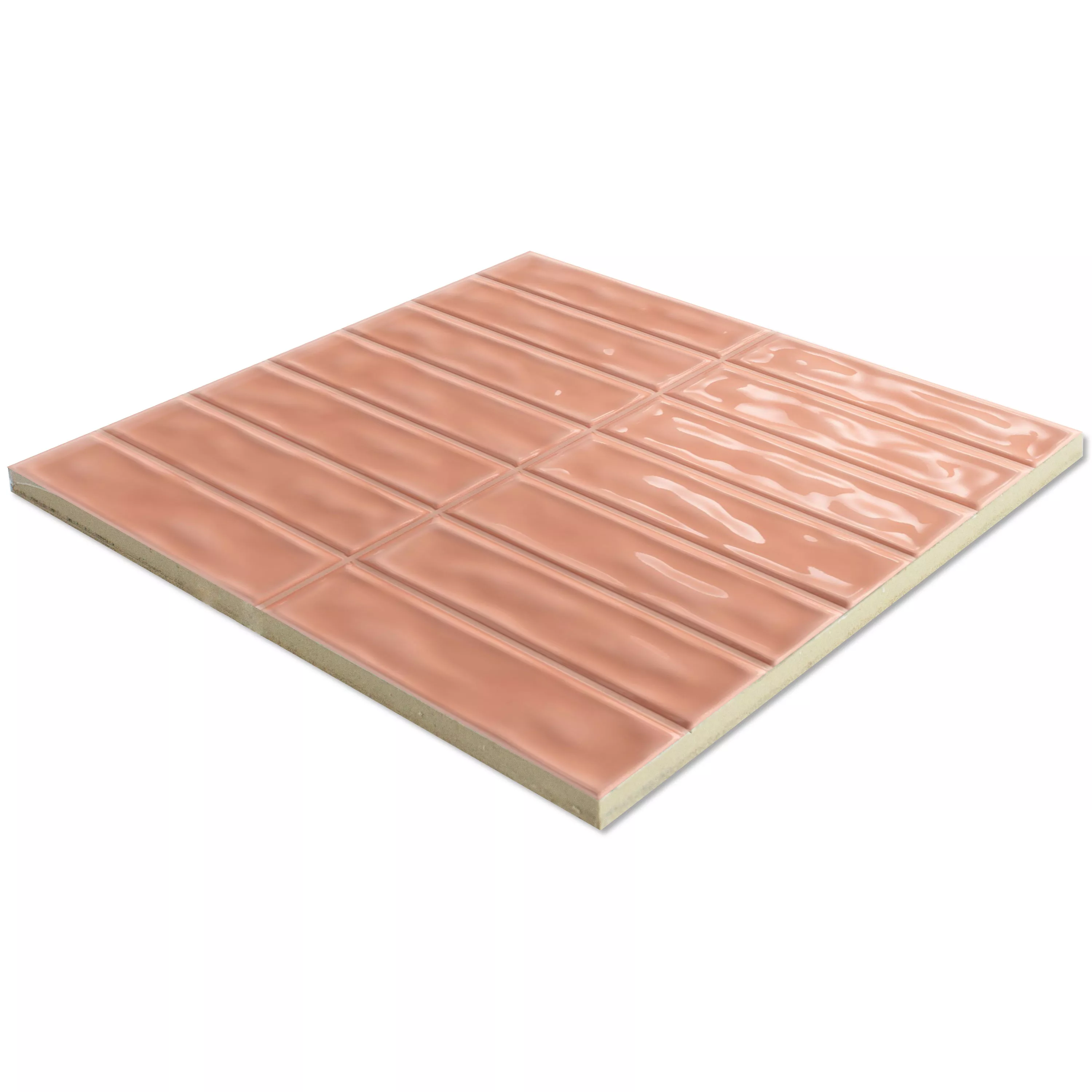 Wandfliesen Verbania Stäbchen Glänzend Gewellt Rosa 20x20cm