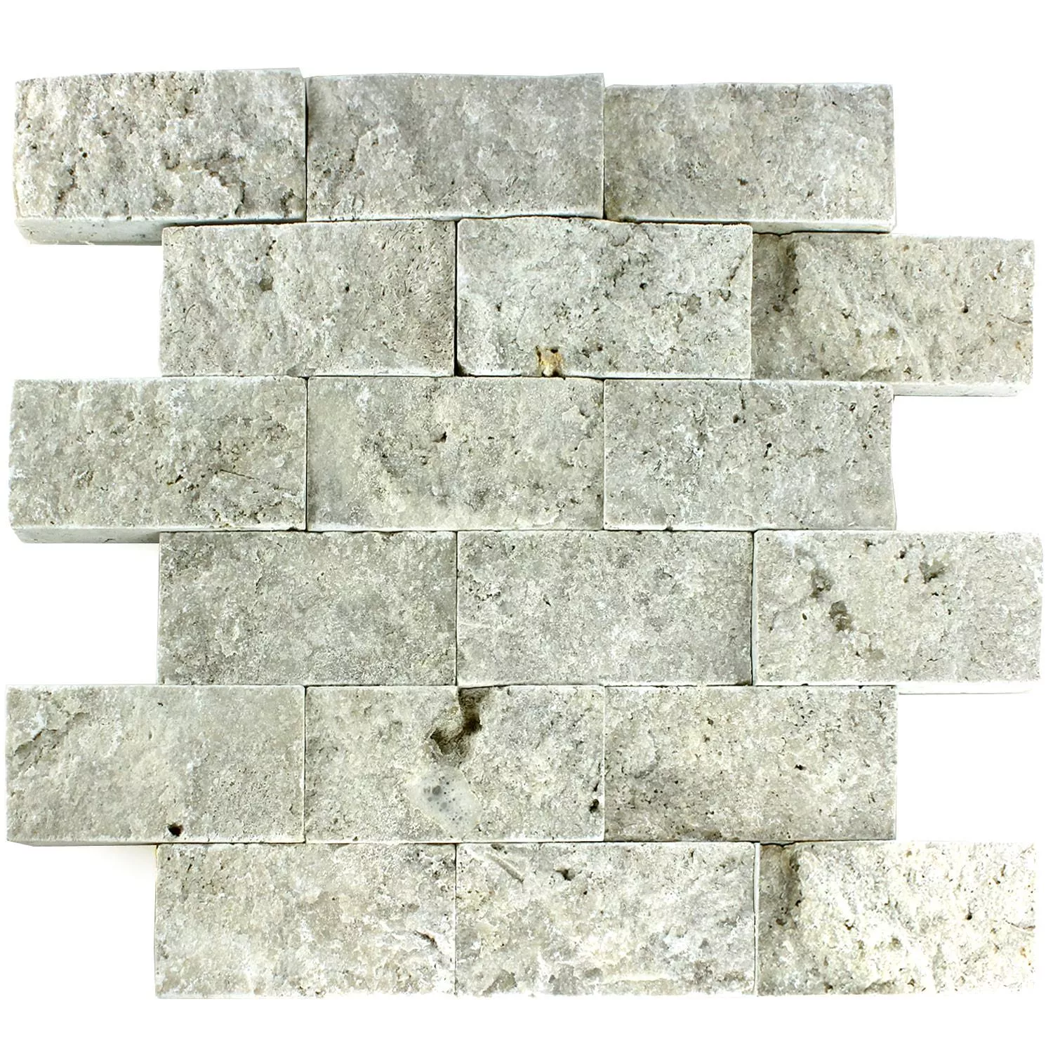 Mozaïektegel Natuursteen 3D Zilver Brick