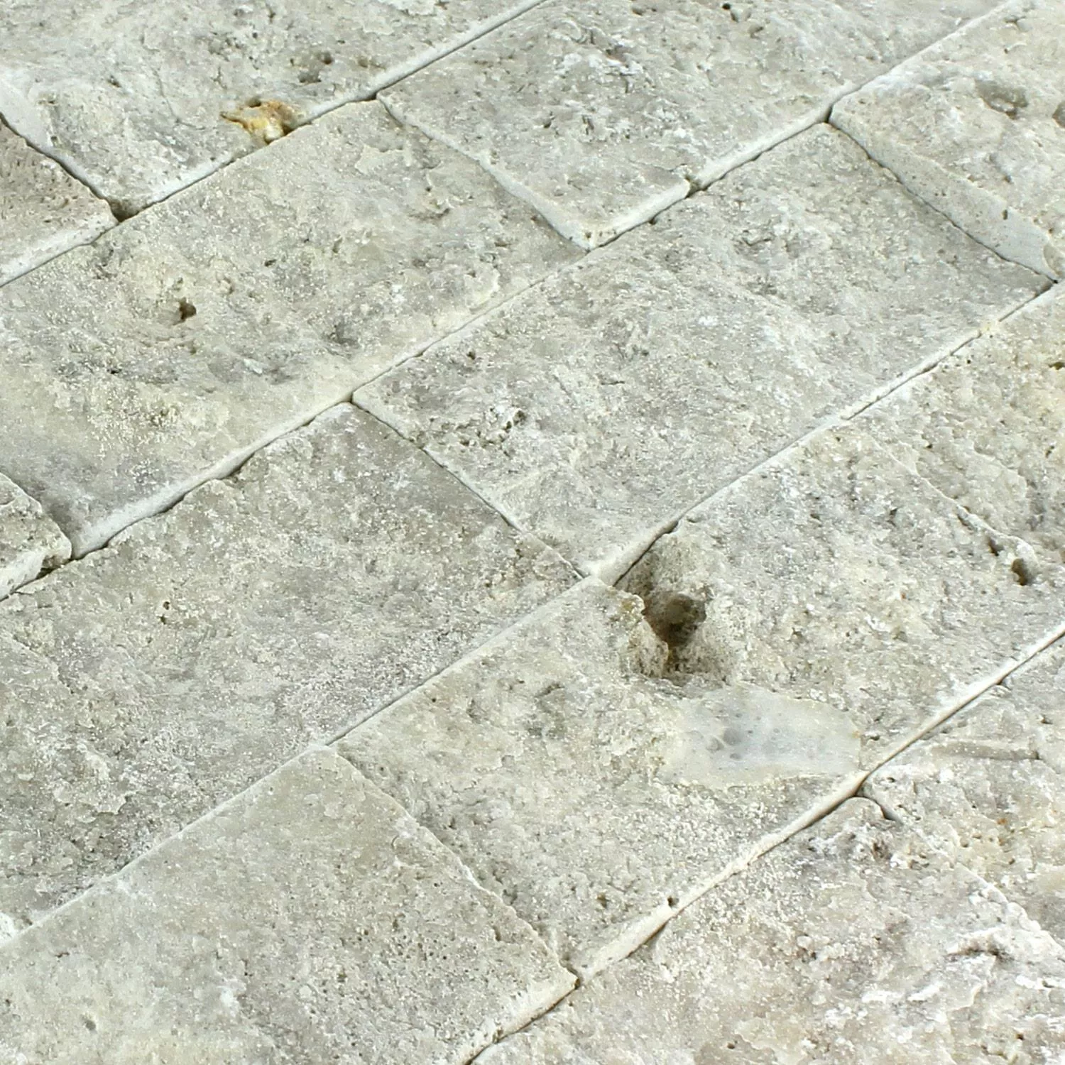 Mozaïektegels zijn in zwang omdat ze met hun vele natuursteentegels een gezellige sfeer in elke ruimte toveren. Het model Sumba Silver Brick is gemaakt van hoogwaardig travertijn in de huidige 3D-look. Daarom zien alle wanden die bekleed zijn met deze robuuste mozaïektegels er ook visueel aantrekkelijk uit. De lichtbeige mozaïektegels Sumba Brick met de donkere spikkels zijn bewerkt met een mat getrommeld oppervlak. Dit oppervlak benadrukt het natuurlijke materiaal van deze tegels.