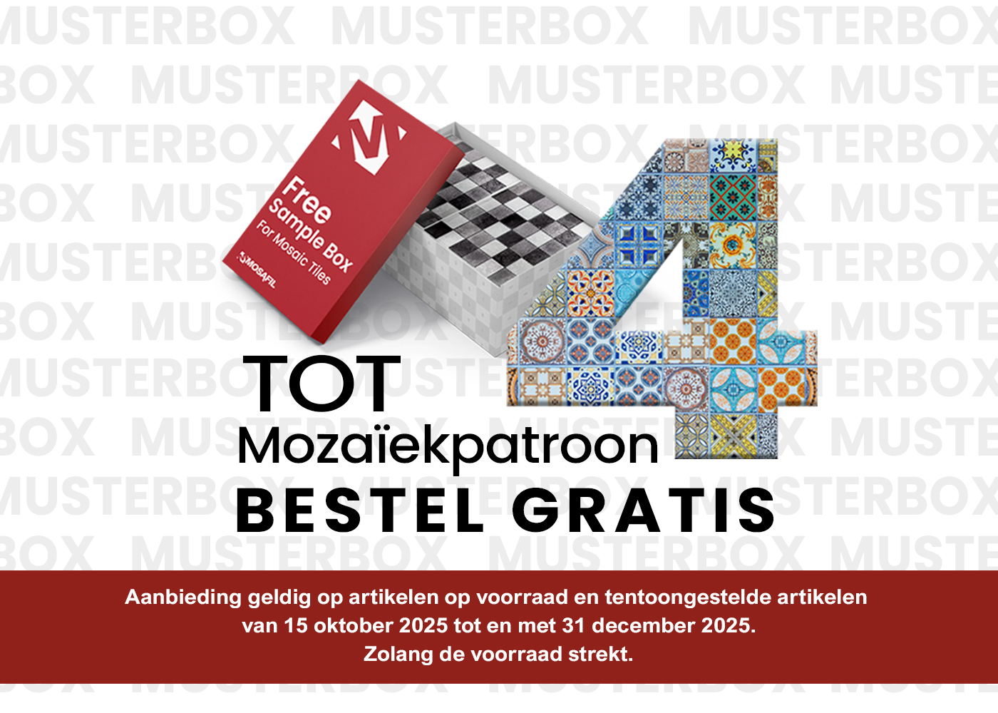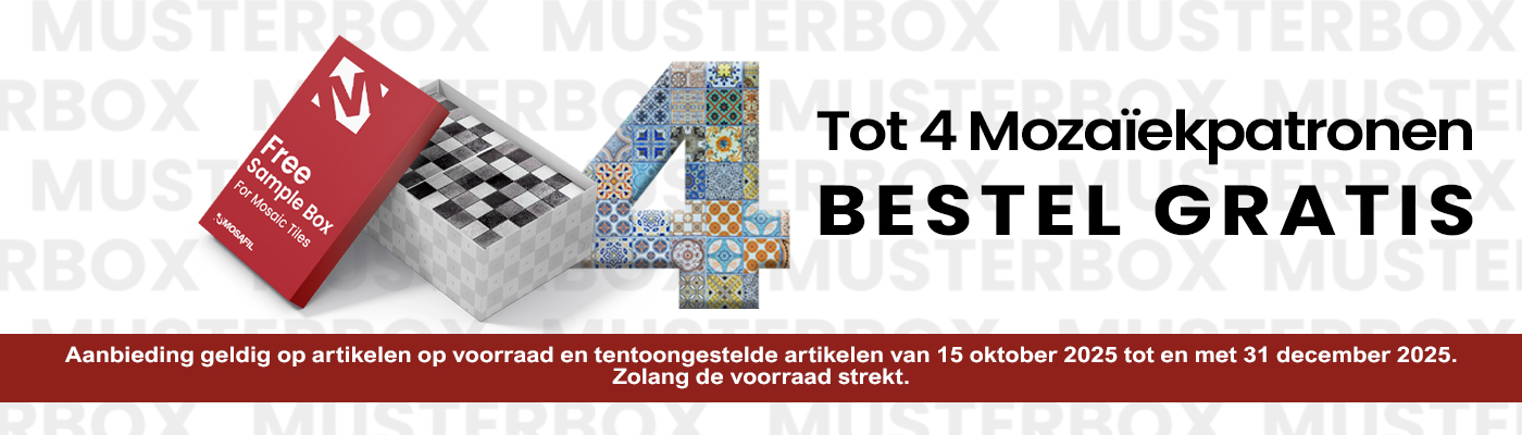 Wij bieden voortdurend een grote selectie hoogwaardige mozaïeken en tegels voor badkamers en toiletten, zwembaden, gangen, woonkamers, evenals terrassen en paden. Bij ons vindt u verschillende tegels, wandtegels, vloertegels, keramische tegels, biesjes en glasmozaïeken, zoals mozaïektegels, natuursteen, wandbekleding, gevelpanelen, zwembadmozaïeken, rivierkeien, houtlook mozaïeken, metalen mozaïeken, natuursteenmozaïeken, roestvrijstalen mozaïeken, aluminium mozaïeken, marmerfragmenten, marmeren mozaïeken, keukenmozaïeken, keukentegels, natuursteentegels, travertijn, leisteen en badkamerttegels. Badkamermozaïeken met veel ontwerpmogelijkheden. Laat u inspireren door de diverse vormen, materialen en kleuren! Blader 24 uur per dag door onze productcategorieën, die we continu bijwerken met nieuwe producten. Bestel eenvoudig uw gewenste tegels of mozaïeken vanuit huis – als monster of in de benodigde hoeveelheid. Wij leveren snel en veilig door heel Europa. Wij adviseren u graag persoonlijk en stellen samen met u op maat gemaakte aanbiedingen op.