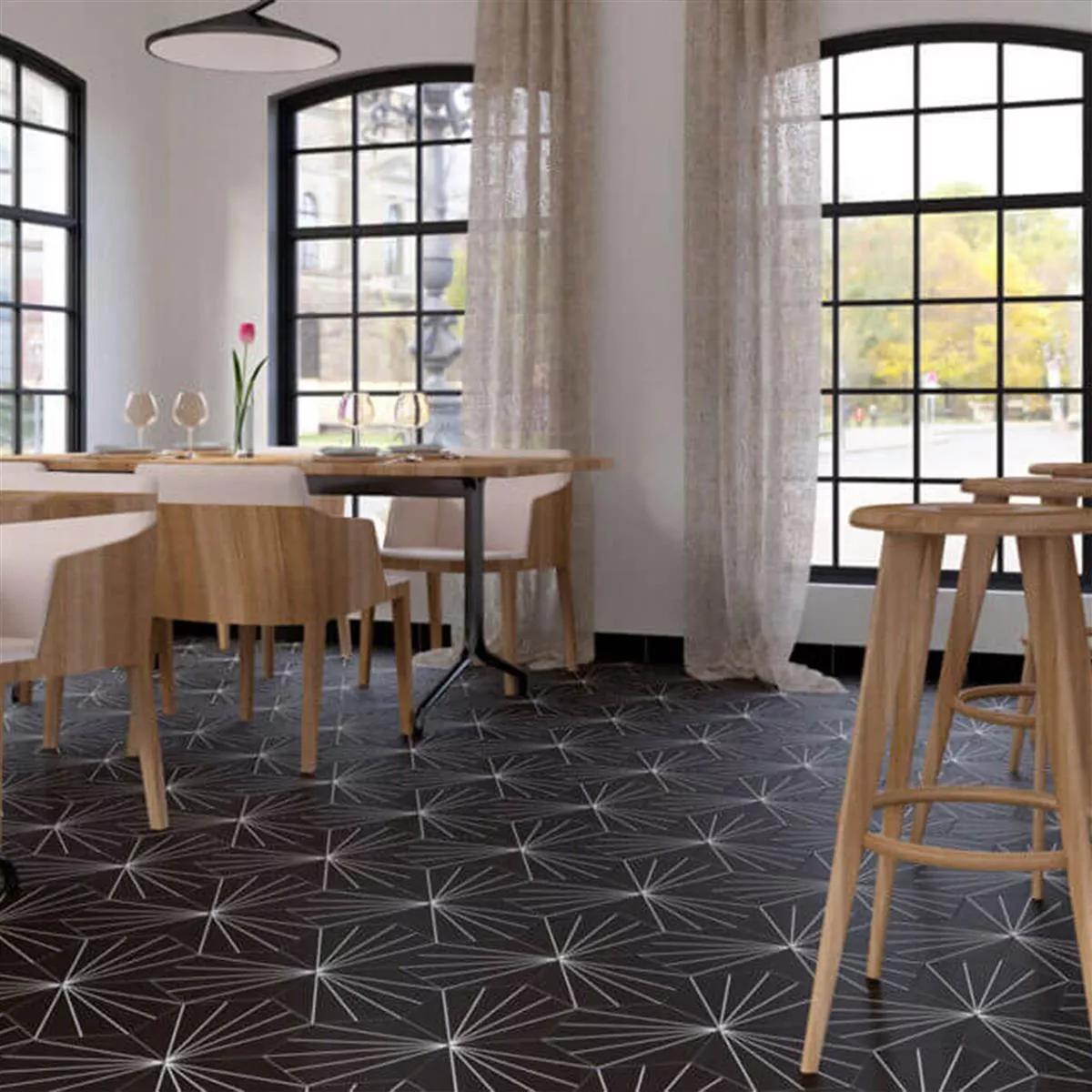 Ontdek de perfecte combinatie van esthetiek en functionaliteit met de Millennium Hexagon porseleinen steengoedtegels in zwarte 3D-look. Laat u inspireren door de moderne elegantie en hoge kwaliteit van deze tegels.