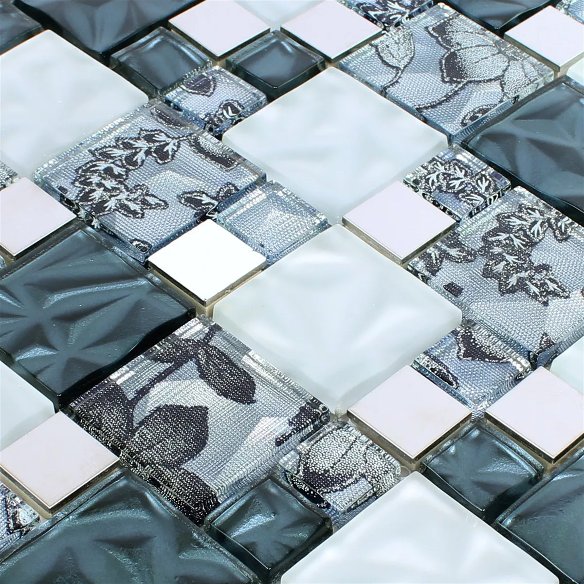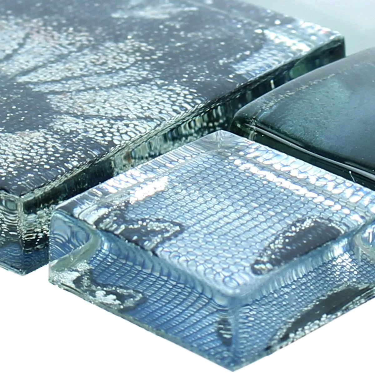 Sample Glas Metaal Roestvrij Staal Mozaïektegel Zadar Grijs Blauw