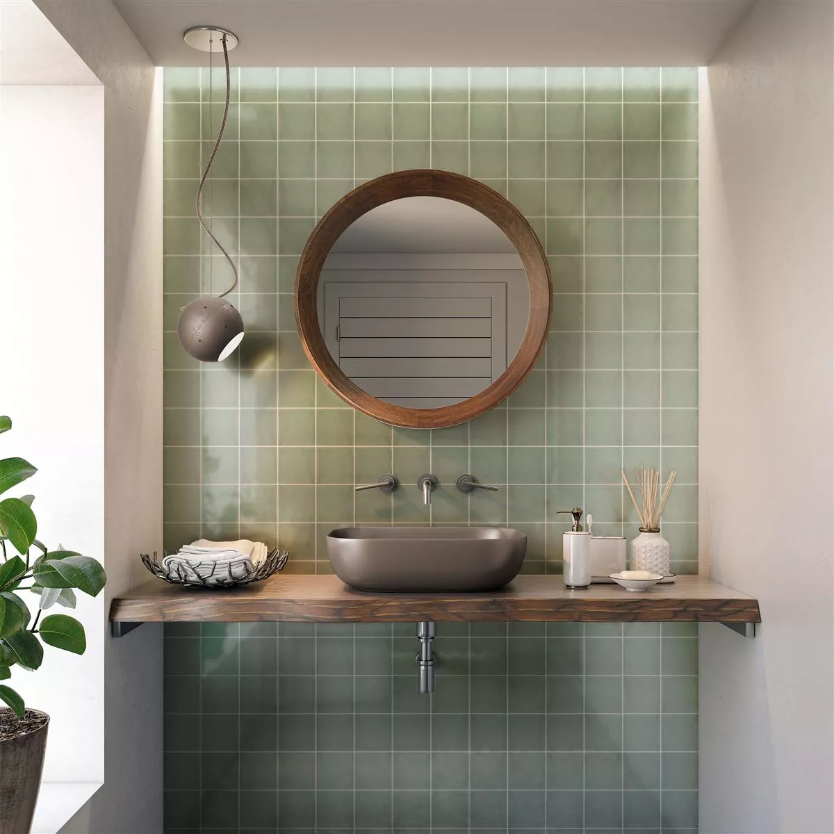 Блестящата, вълнообразна повърхност на плочката създава завладяващи светлинни отблясъци и придава на вашите стени структуриран, елегантен вид. С дебелина 9,5 мм и размер на квадрата 13х13 см, плочката предлага едновременно здравина и гъвкавост при полагане. Компактният формат позволява креативни възможности за дизайн и е идеален за бани, кухни, мокри помещения, интериори, всекидневни и душове.