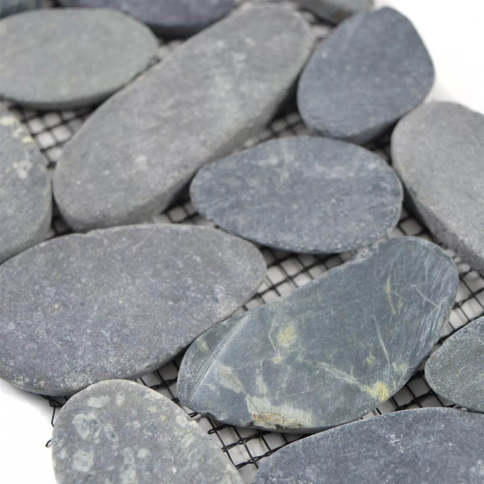 Речен бордюр Chenoa 10x30см се предлага в различни цветове. Изтънчен ефект може да се постигне с бордюр от естествен камък в същия цвят като плочките за баня. При закрепване на границата трябва да се внимава да се осигури хармонично разположение. Също така е важно бордюрът да съвпада с плочките в банята като форма, дебелина на материала и цвят. Оптимални резултати се постигат, когато мозаечната плочка или мраморната шарка се включат в бордюра от речни камъчета. Интересни контрасти могат да бъдат създадени с граници от различни цветове. Например, те могат да се използват и за да направят много високите стаи визуално по-ниски. Речен камъчен бордюр Chenoa 10x30см може да се постави и на стената в банята вместо плочки за баня.