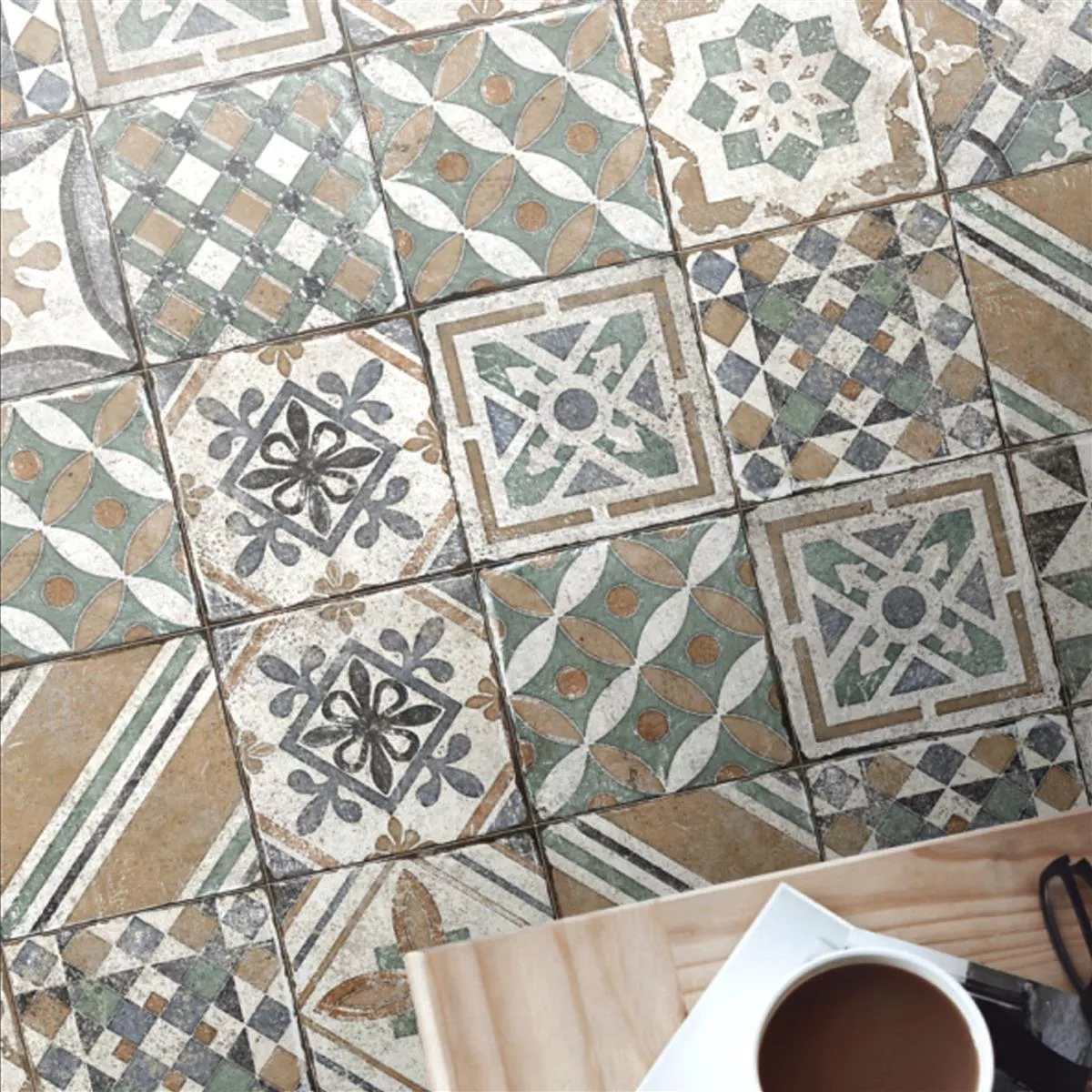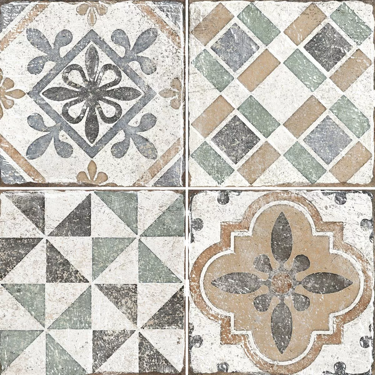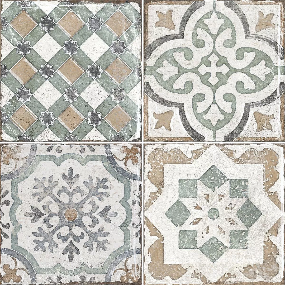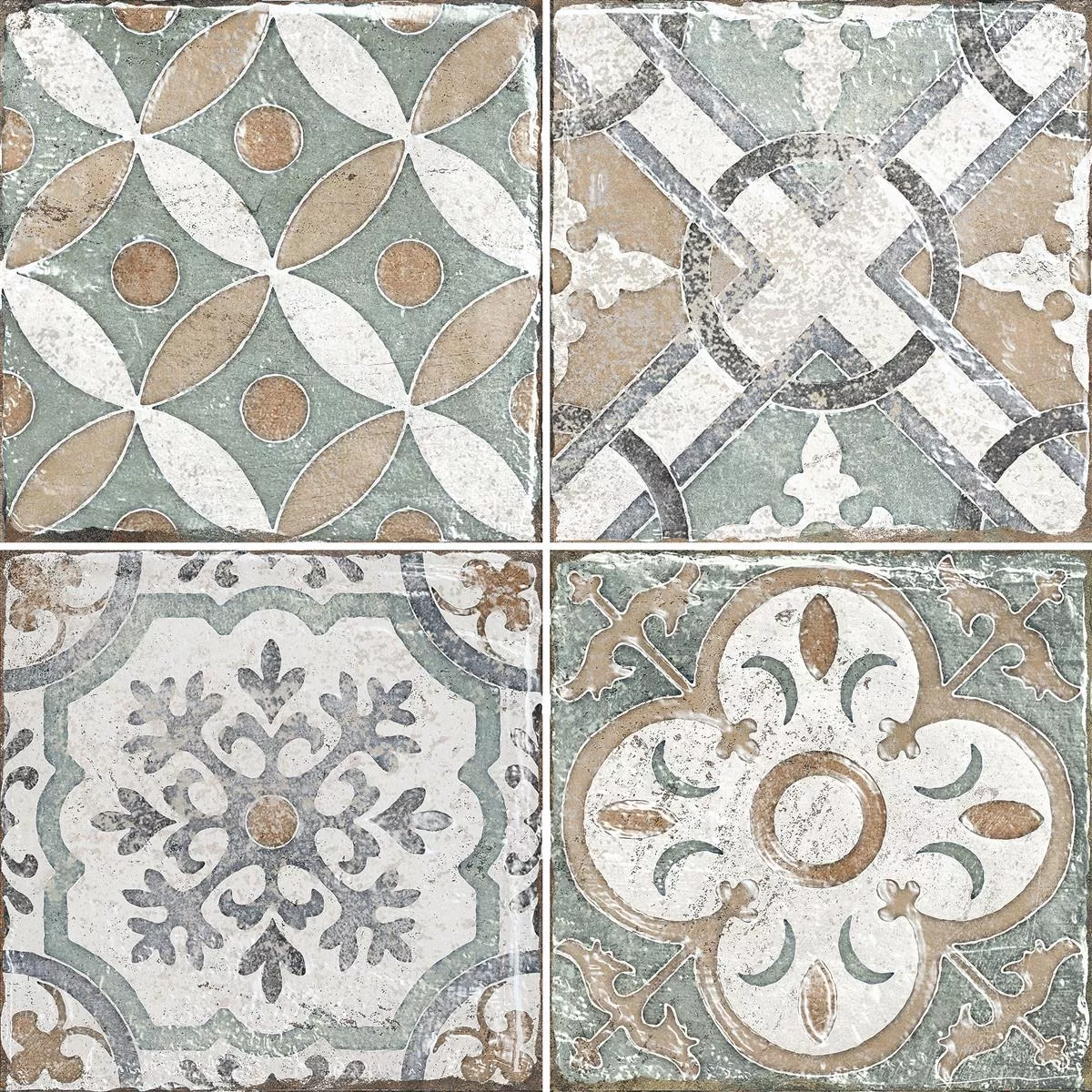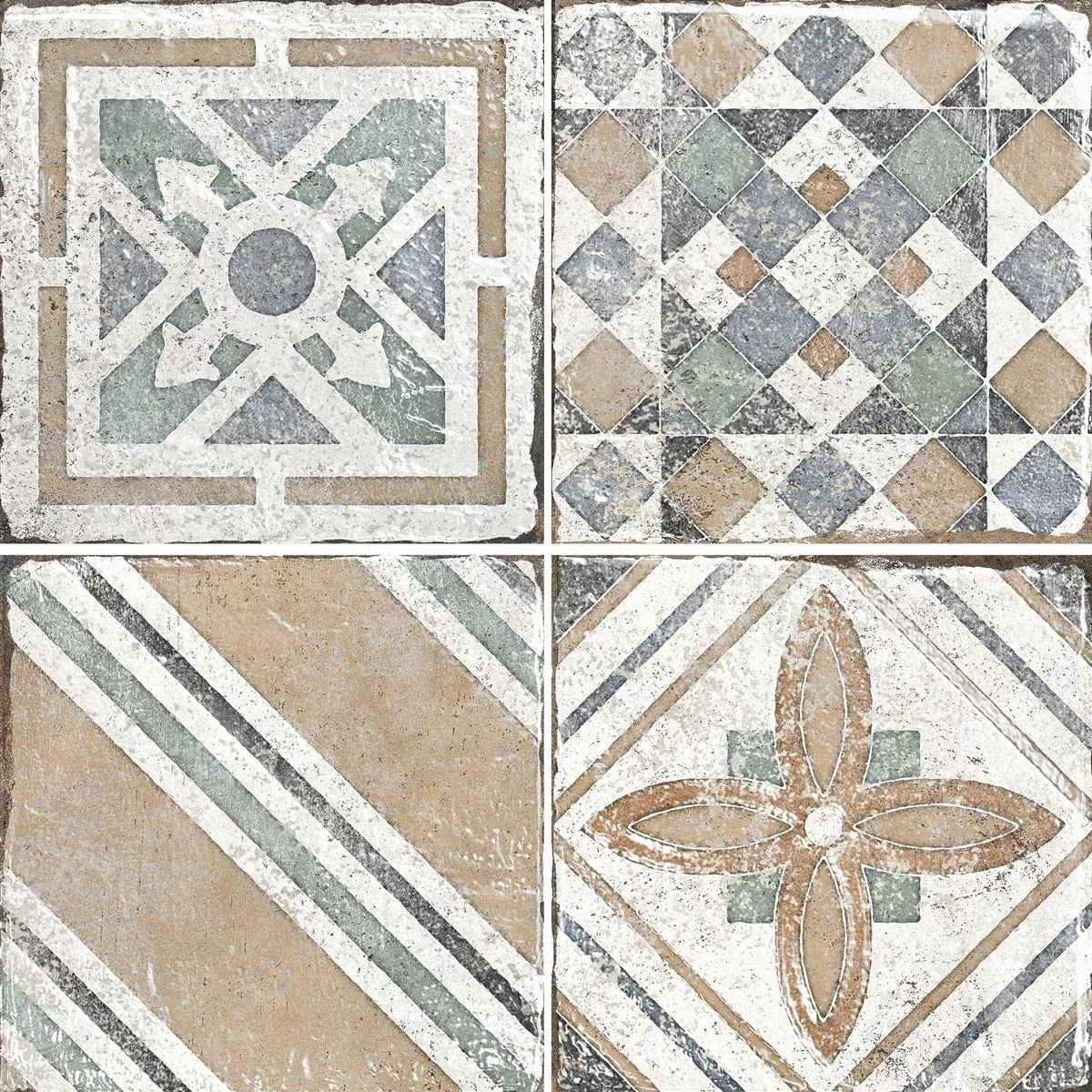 The Monarch cement tiles are a stylish addition to any room. With their square shape of 20x20cm and a thickness of 10mm, they are robust and durable. The package contains 0.72m² of tiles in grey, green, brown, beige and white, which are designed in a retro and vintage look.