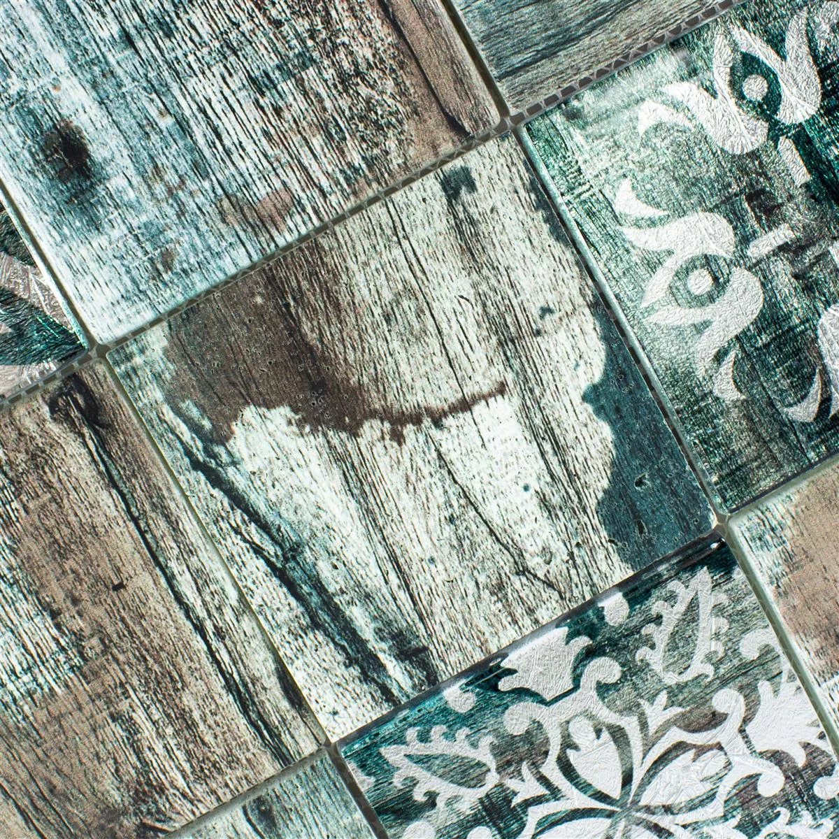 Mosaïque En Verre Carrelage Imitation Bois Norwalk Gris Brun Vert Q98