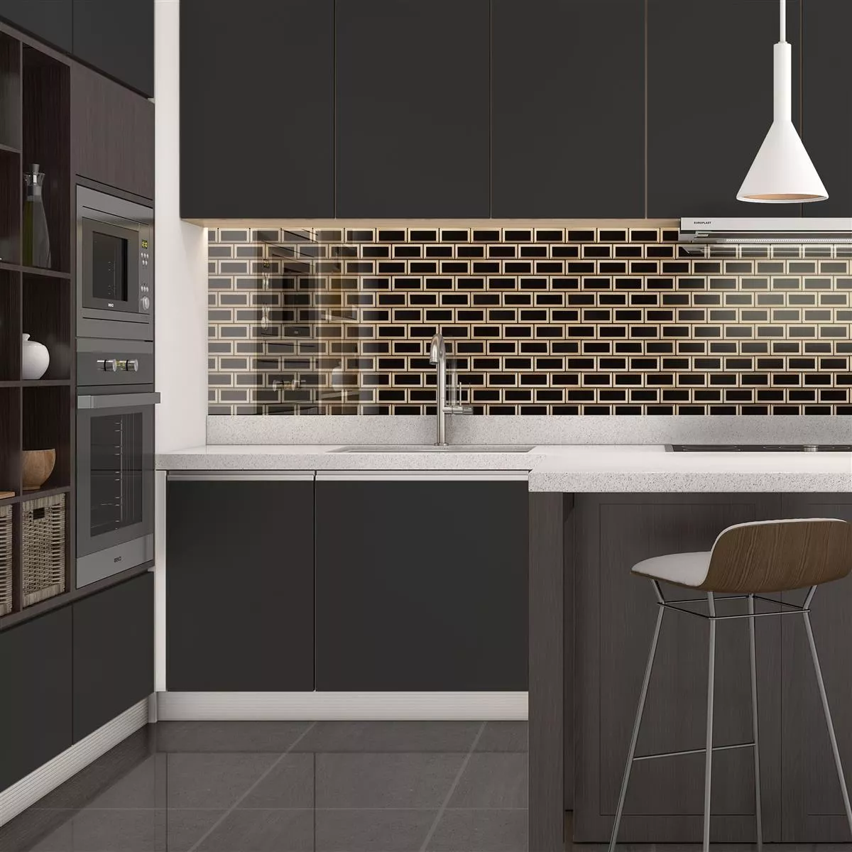 La surface brillante des carreaux donne à la pièce une dimension supplémentaire et la fait paraître plus grande. La lumière est réfléchie, créant une atmosphère lumineuse et animée.