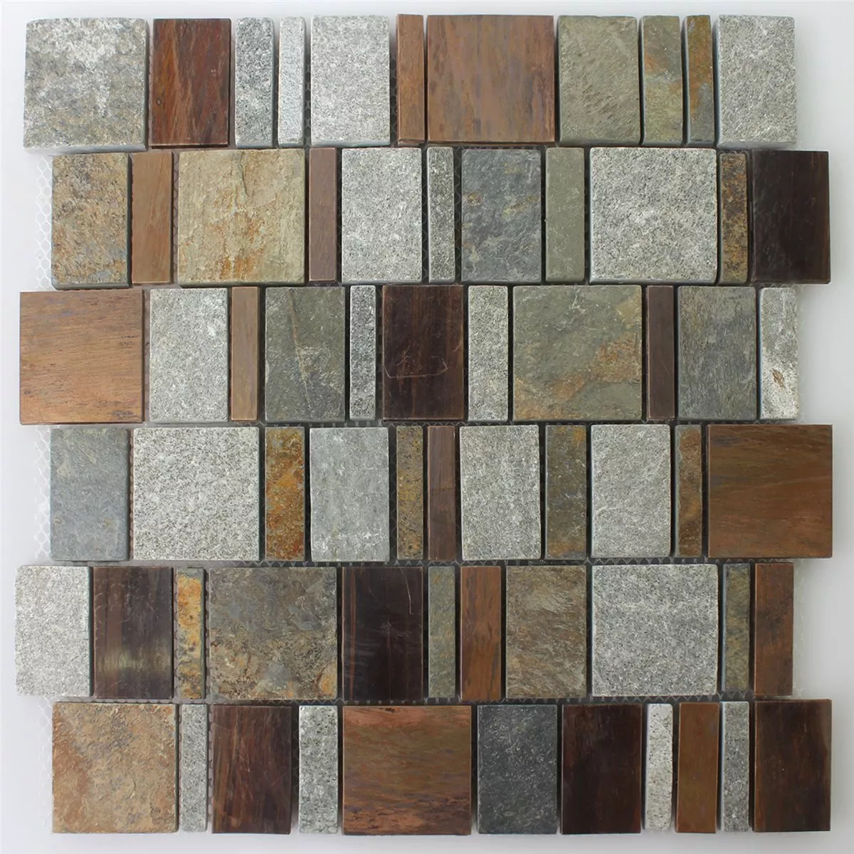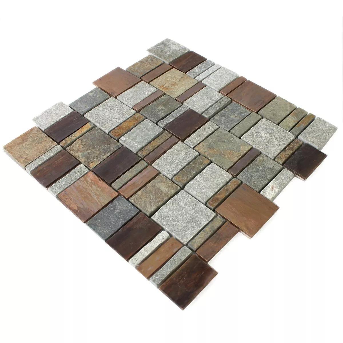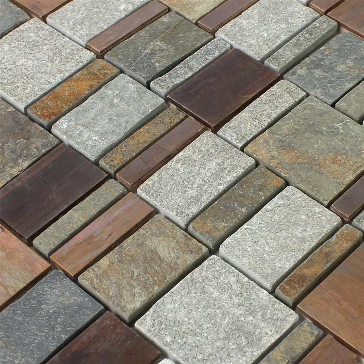 Pierre Naturelle Quartzite Métal Aluminium Mosaïque Carrelage Topsail Cuivre Brun
