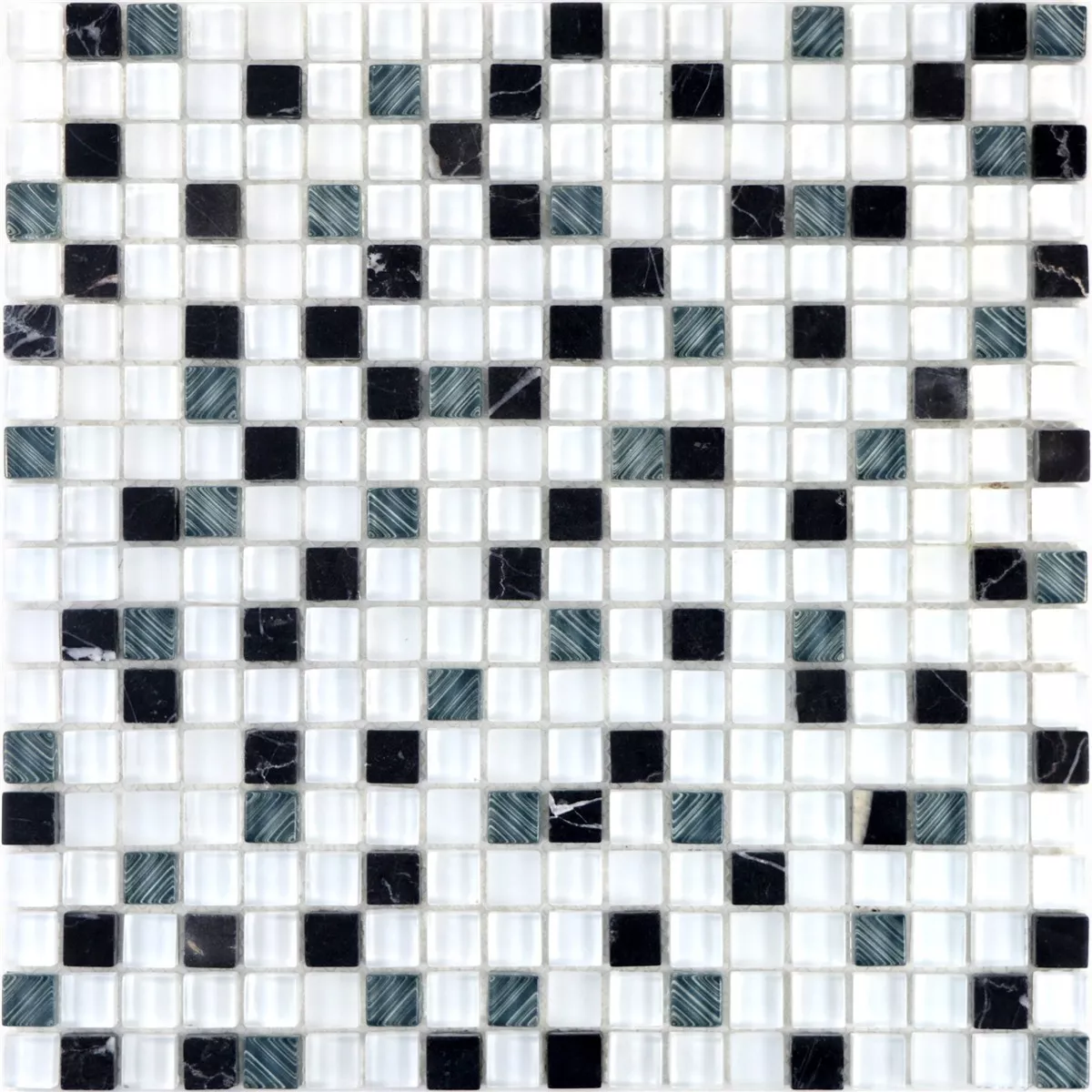 Campione Mosaico Di Vetro Pietra Naturale Piastrelle Nexus Super Bianco Nero