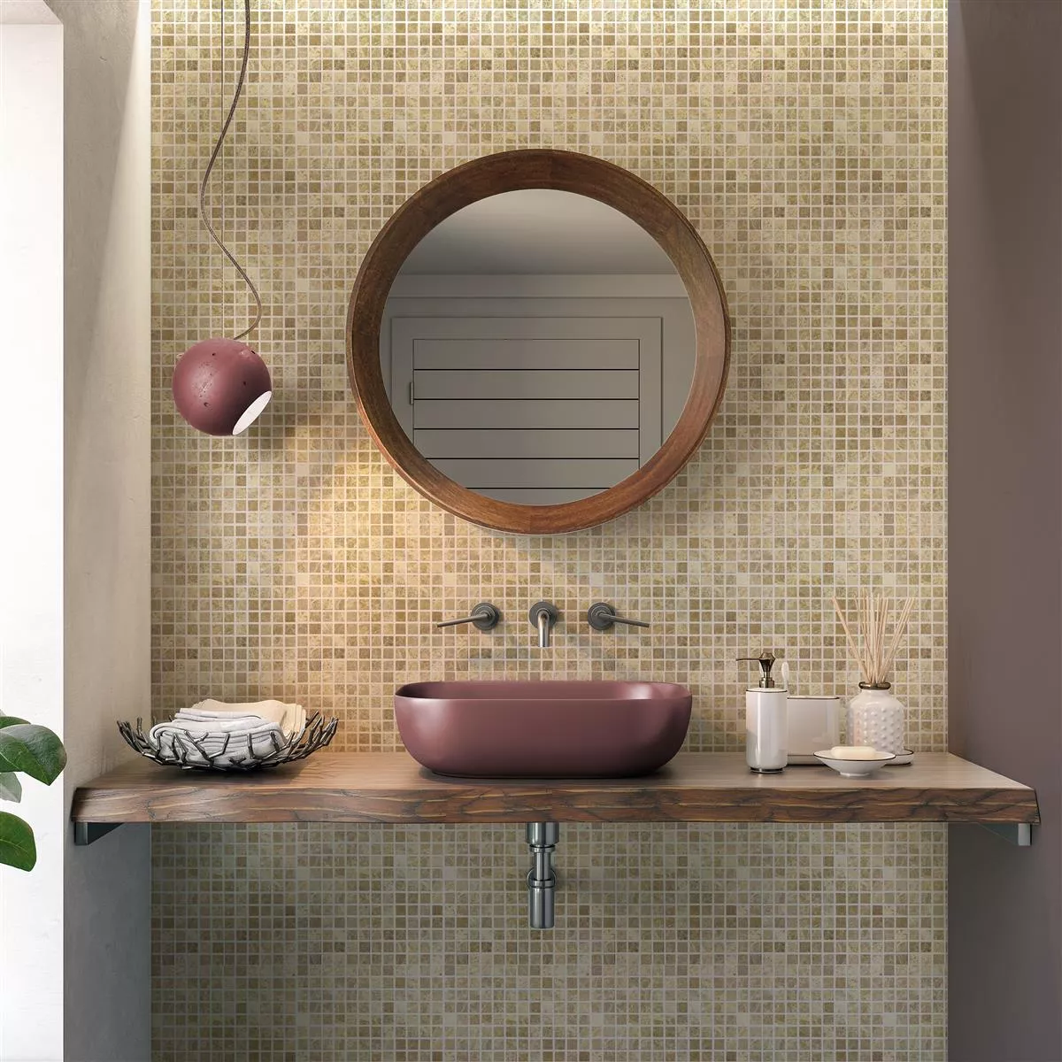 La combinazione di colori beige, crema e marrone chiaro crea un'atmosfera calda e accogliente. Questi colori si adattano a molti stili di arredamento e offrono una varietà di opzioni di design. La finitura opaca delle piastrelle conferisce al tuo spazio un aspetto naturale e organico che valorizza il tuo design d'interni.