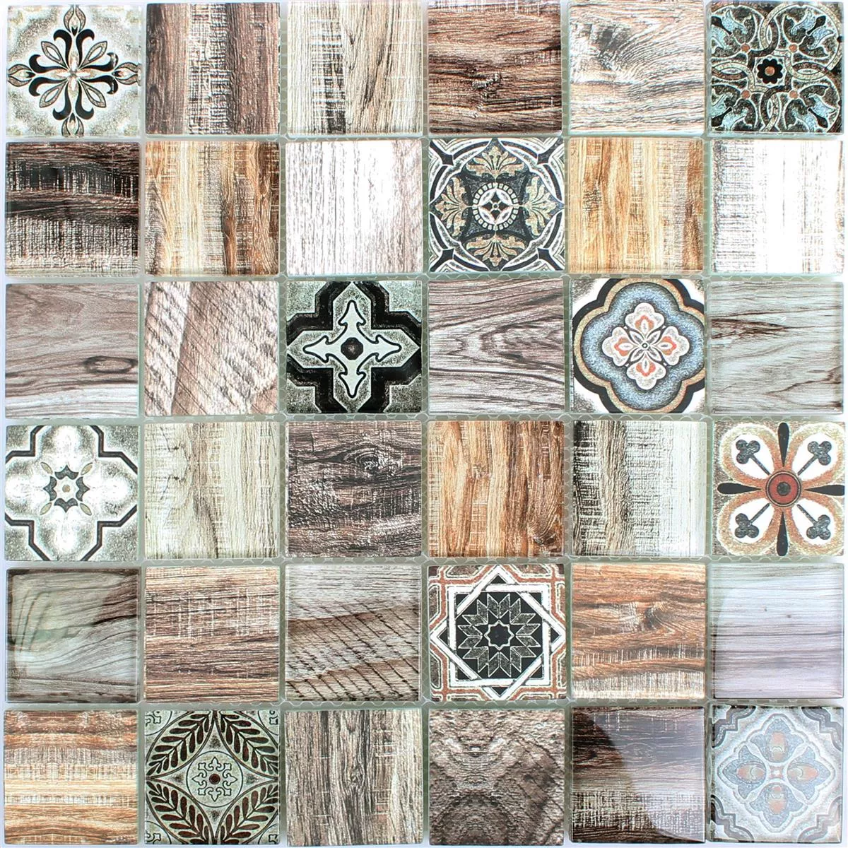 Very nice mosaic, some tesserae are opaque with design on the surface, others in glossy glass with the same design but printed on the bottom. Very nice effect. Punctual delivery and undamaged product.
