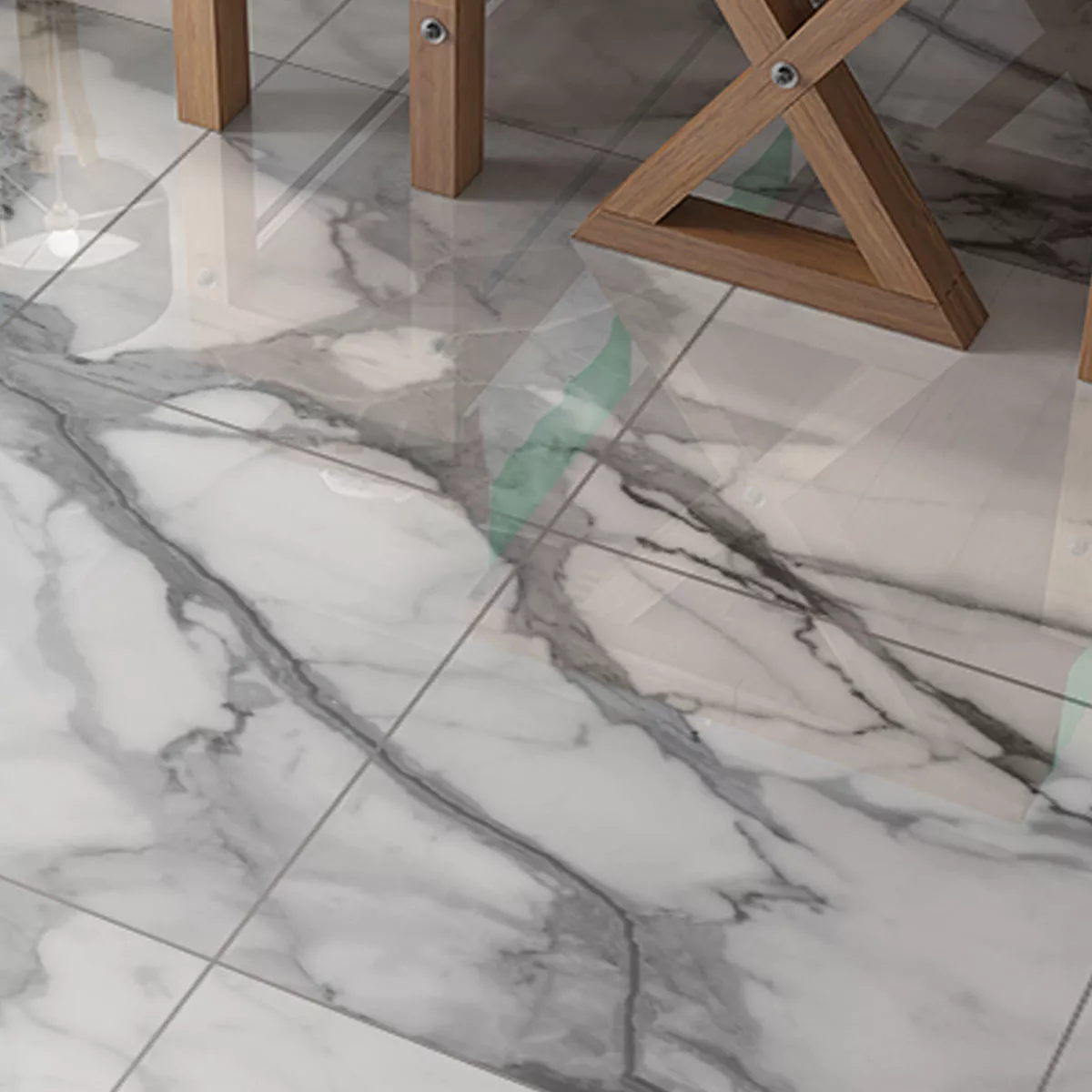 Queste piastrelle in gres porcellanato di alta qualità nei colori bianco e grigio donano alla tua stanza un'eleganza senza tempo. Con la loro superficie lucida e brillante e l'aspetto ingannevolmente realistico del marmo, portano un fascino lussuoso nella vostra casa.