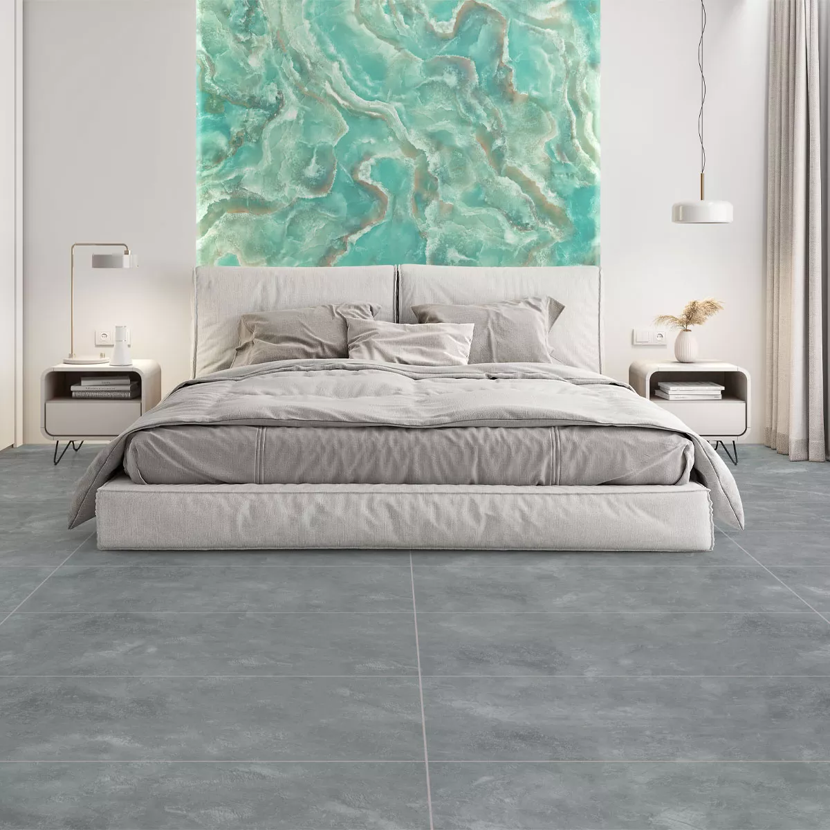 Il pavimento Cortina con effetto cemento opaco unisce un design senza tempo con un'elevata funzionalità. Queste piastrelle di grande formato in un elegante grigio (60x120 cm) sono perfette per varie zone della tua casa: