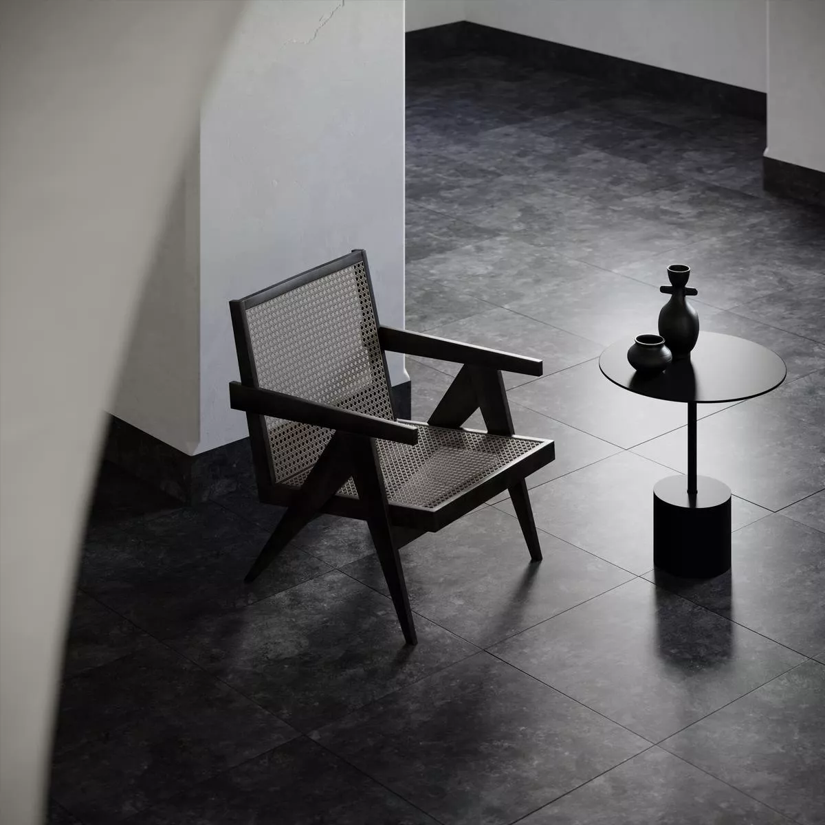 Il pavimento in gres porcellanato Triton color antracite colpisce per la sua versatilità e il suo design moderno effetto cemento. Con una dimensione di 60x60 cm e uno spessore di 8 mm, questa piastrella è robusta e durevole. La superficie opaca e smaltata offre una sensazione piacevole e conferisce a ogni ambiente un aspetto contemporaneo.