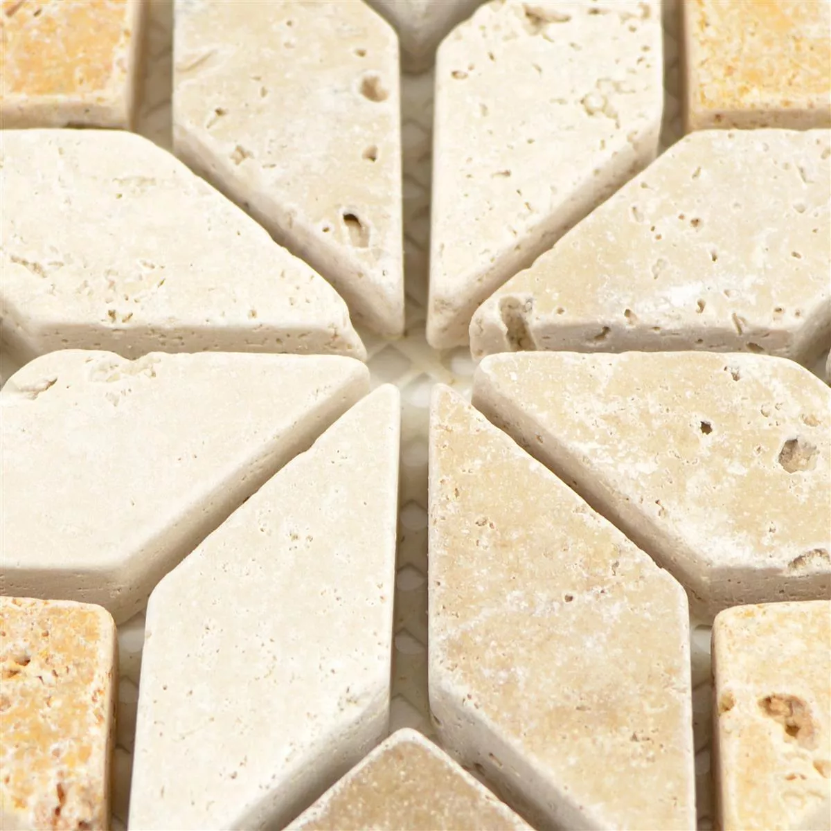 Le piastrelle sono realizzate in pietra naturale travertino e sono molto robuste. Hanno un livello di abrasione 4 e sono quindi molto adatti per l'uso quotidiano. Le piastrelle fiore sono piastrelle per esterni e interni. Sono resistenti al gelo e anche antiscivolo. Pertanto, la piastrella in pietra naturale può essere utilizzata in modo molto universale. Cucina, bagno, terrazza, giardino d'inverno o area piscina possono essere aggiornati con questo prodotto.