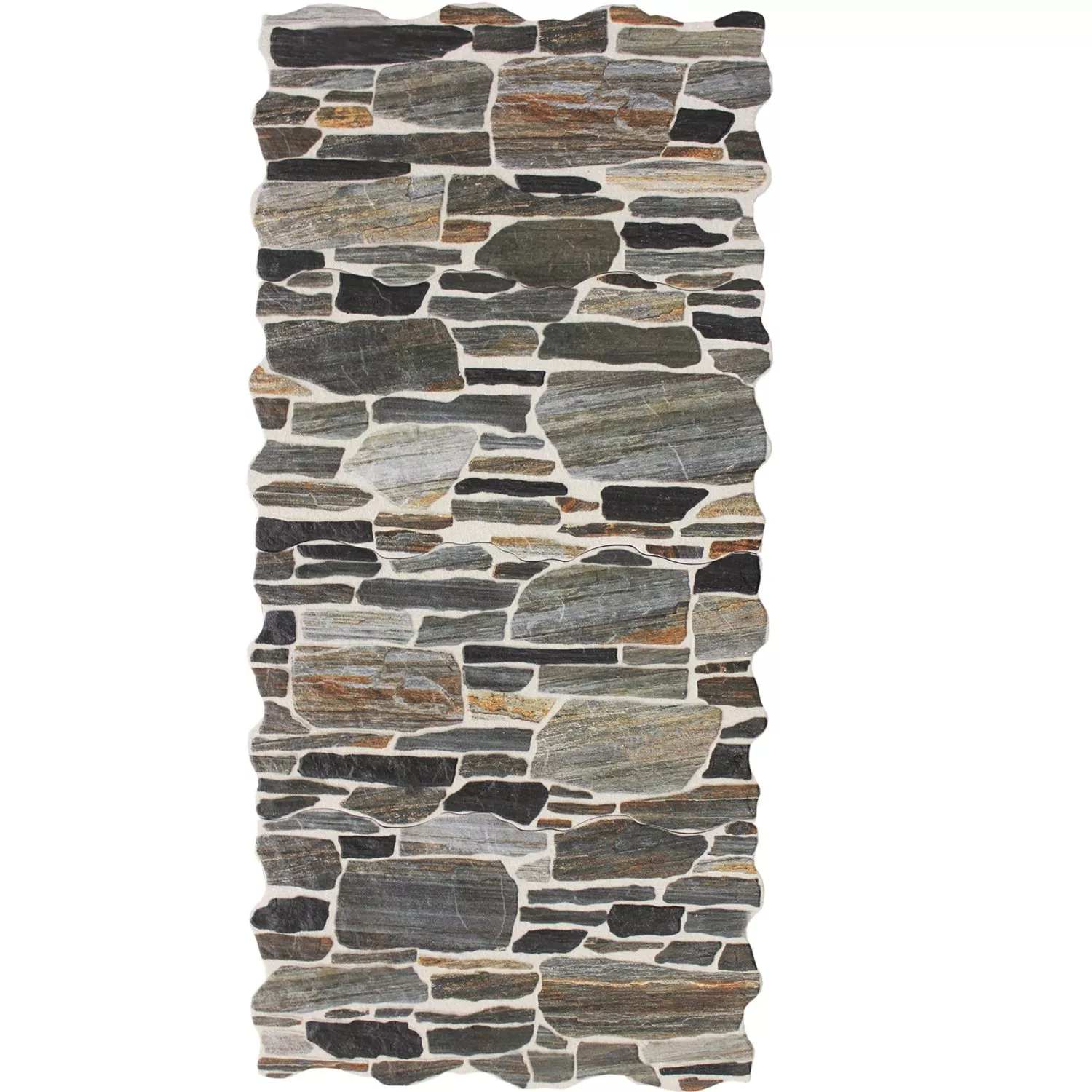 Il rivestimento effetto pietra Roya in Grafito crea un'immagine dall'aspetto molto naturale come rivestimento per pareti. L'aspetto della pietra è creato dalla colorazione varia prodotta in ceramica. Si tratta di piastrelle in ceramica di altissima qualità nel formato 26,3 cm x 47,5 cm, con i bordi che si incastrano l'uno nell'altro in modo strutturato con le altre piastrelle di questo rivestimento. Questo crea sulla superficie un aspetto muro di pietra naturale, che ha un effetto molto vario con le sue diverse tonalità scure e chiare. Questi rivestimenti effetto pietra Roya sono disponibili in due direzioni di colore. Queste piastrelle di ceramica possono essere lavorate molto bene e creano una parete naturale che rimane molto robusta e di facile manutenzione come rivestimento. La superficie è opaca e lo spessore delle singole piastrelle a 7,5 mm le rende molto robuste e solide. Questi rivestimenti con la loro struttura creano un quadro generale molto chiaro sulla superficie. Per le direzioni del colore; Grafito e Perla con l'aspetto naturale della pietra naturale sono eccellenti negli ambienti ed è elegante avere una parete in pietra naturale. Con questi rivestimenti effetto pietra Roya è possibile ottenere l'effetto desiderato in modo molto efficace. Questi rivestimenti offrono un valore aggiunto di altissima qualità ed è sorprendente quanto originali e nobili appaiano in superficie queste piastrelle.