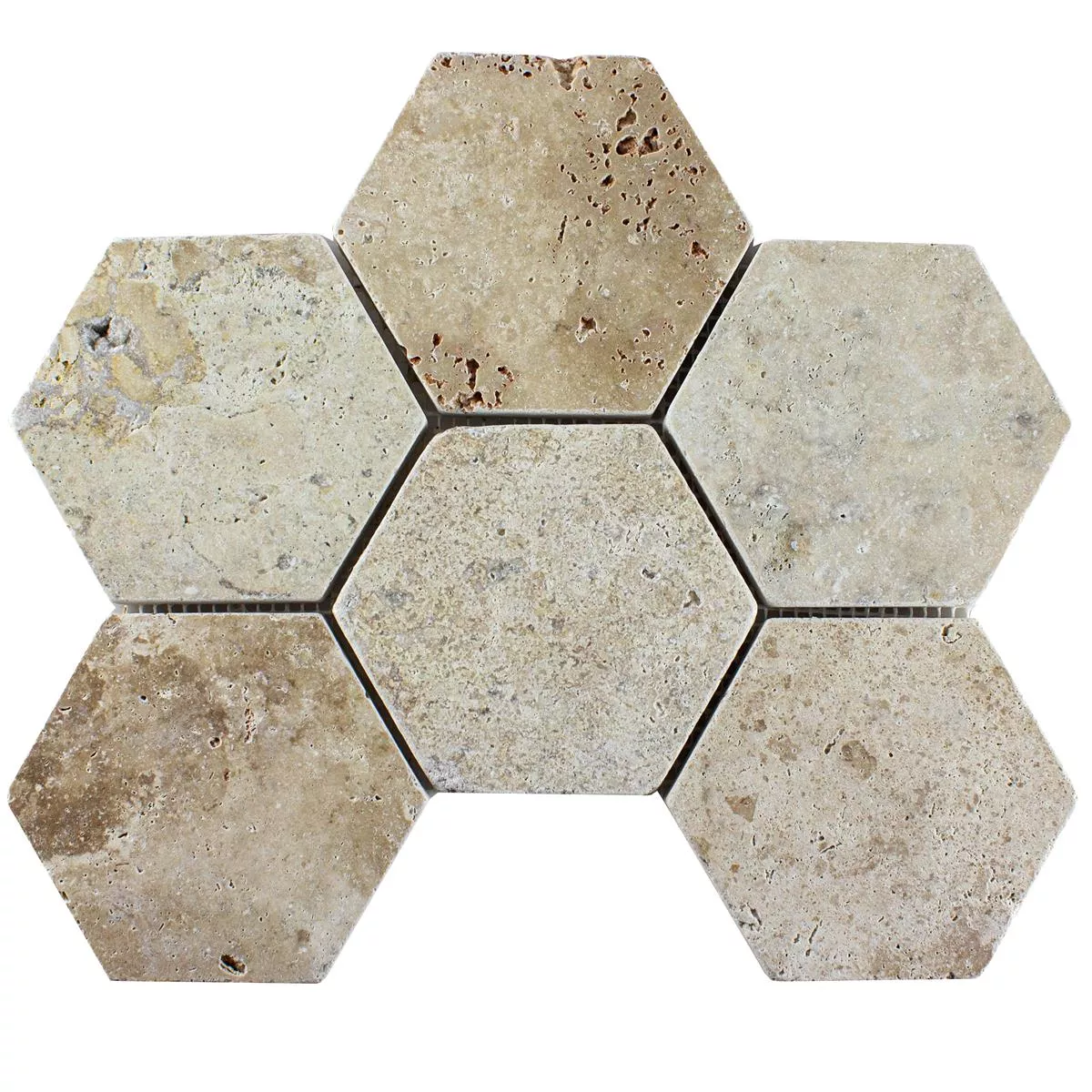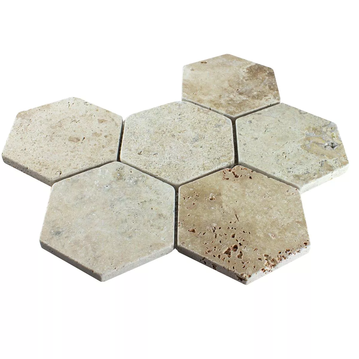 Travertino Pietra Naturale Mosaico Mercado Esagono Beige