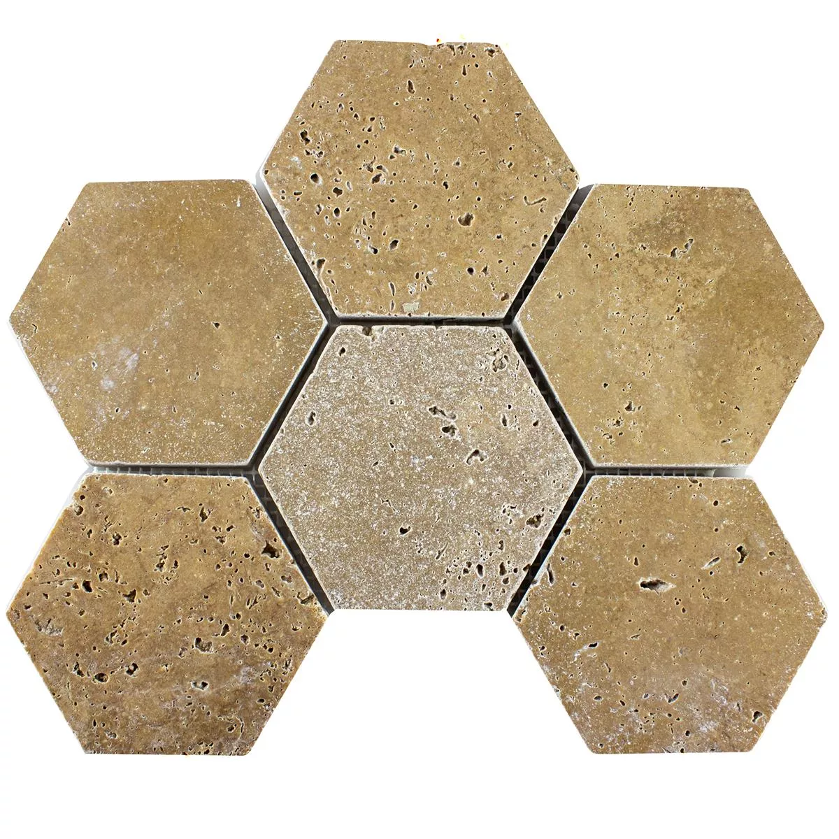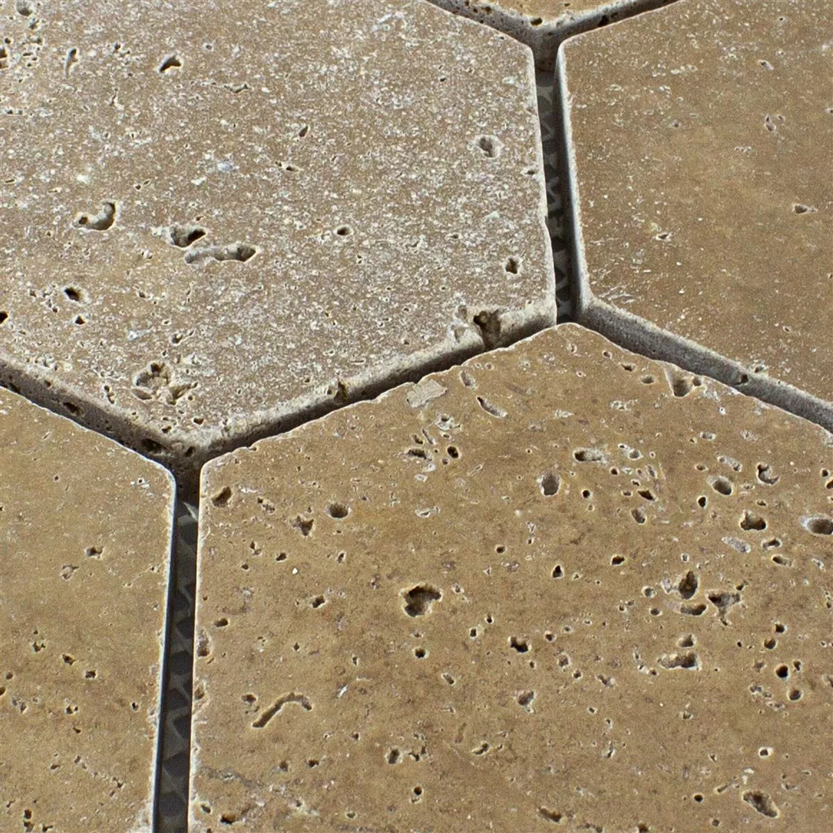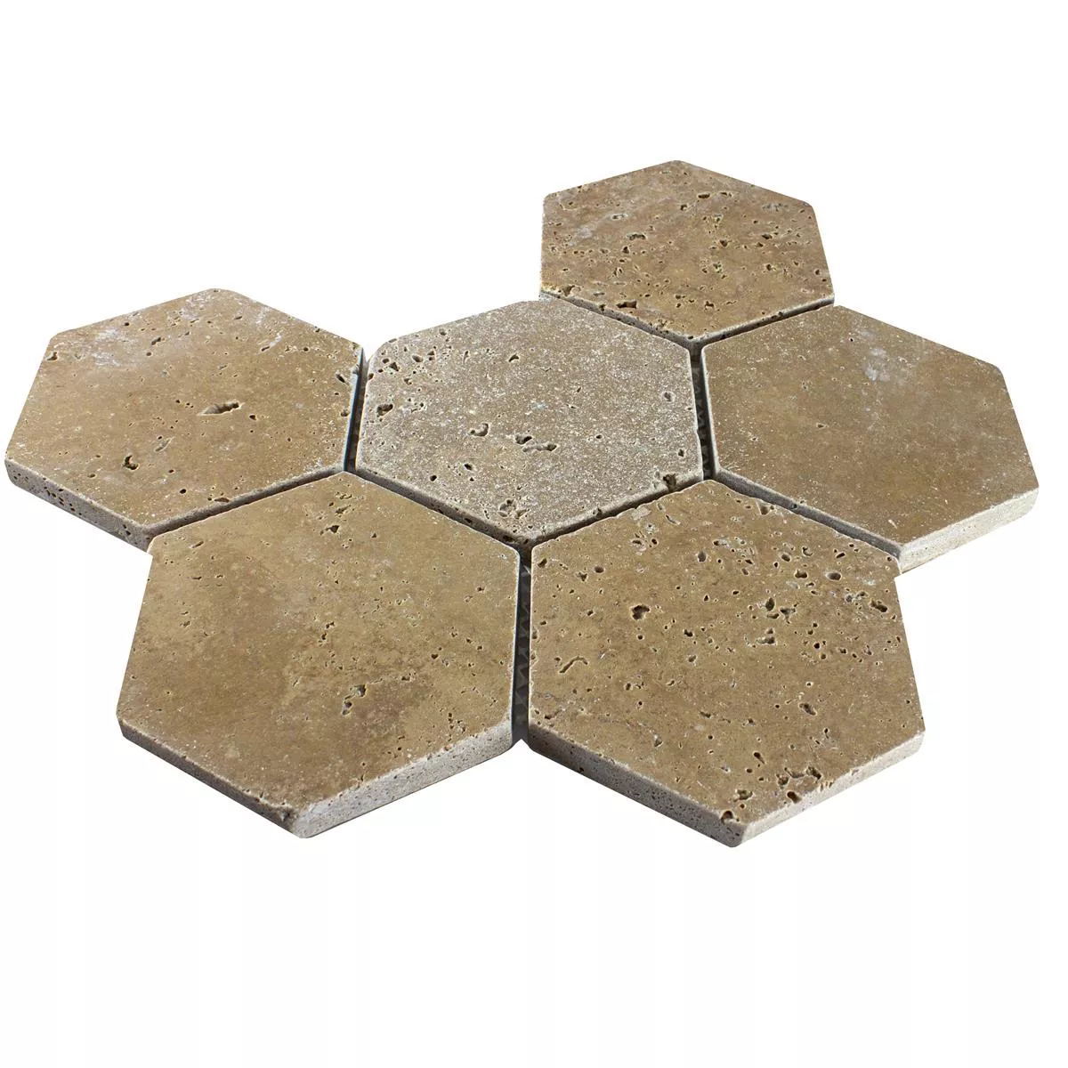 Travertino Pietra Naturale Mosaico Mercado Esagono Marrone