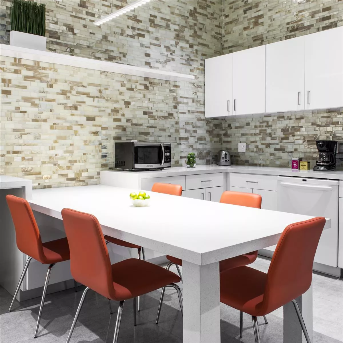 Glasmosaikfliesen sind mit ihrer glatten Oberfläche nicht nur äußerst attraktiv, sie sind auch besonders umweltfreundlich, weil sie zu 75% aus recyceltem Altglas bestehen. Um einen großzügigen Eindruck zu erzielen, können Mosaikfliesen einer Farbe zur Gestaltung des Raumes eingesetzt werden. Ganz besonders individuelle Fliesenböden entstehen, wenn Mosaikfliesen in unterschiedlichen Farben zu Mustern arrangiert werden. Als eleganter Übergang zwischen Fußboden und Wand können farblich passende Sockelleisten die Wirkung der Fliesen noch unterstreichen. Böden aus Glasmosaik sind gut geeignet für Allergiker, weil sie leicht zu pflegen sind. Auch Besitzer von Haustieren wissen die guten Pflegeigenschaften von Böden aus Glasmosaik zu schätzen. Mit den Mosaikfliesen der Serie Metropolis von Trend-Vi gewinnen Wohnräume italienisches Flair und eine unvergleichlich wohnliche Atmosphäre.
