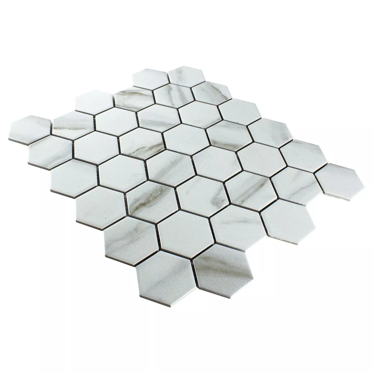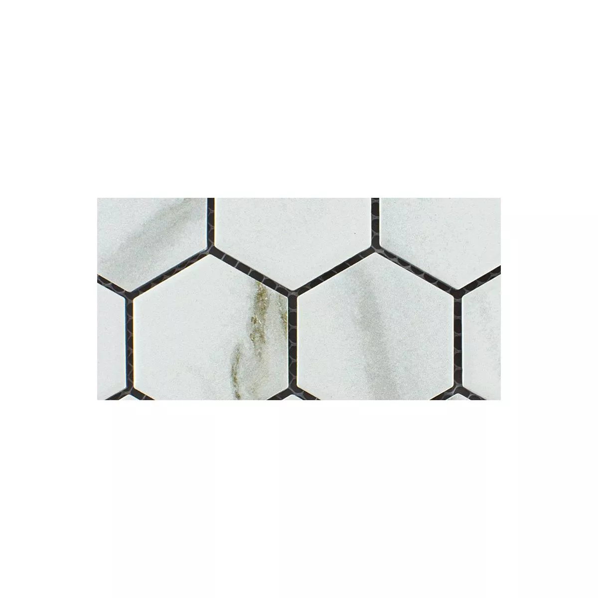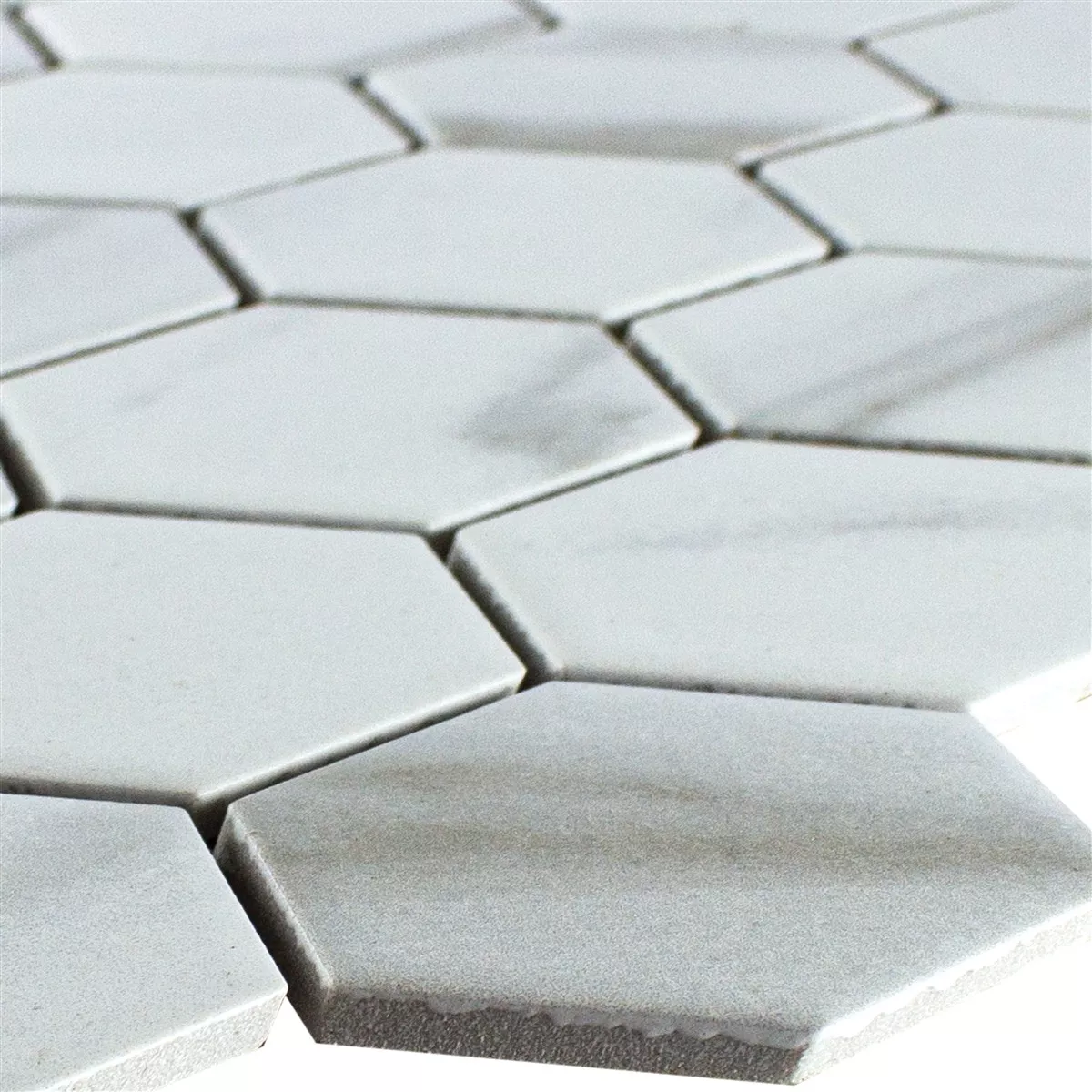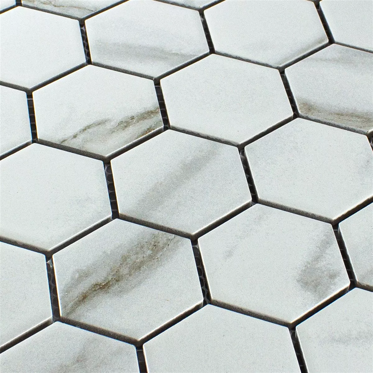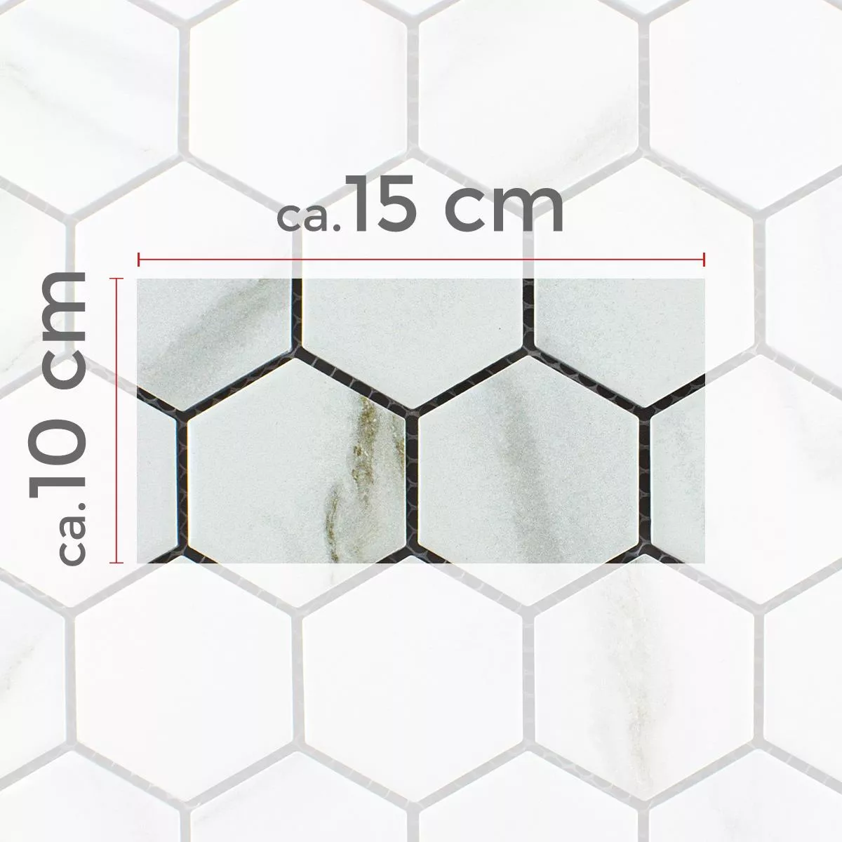 Muster von Keramik Mosaik Fliesen Hilgard Steinoptik Hexagon Calacatta