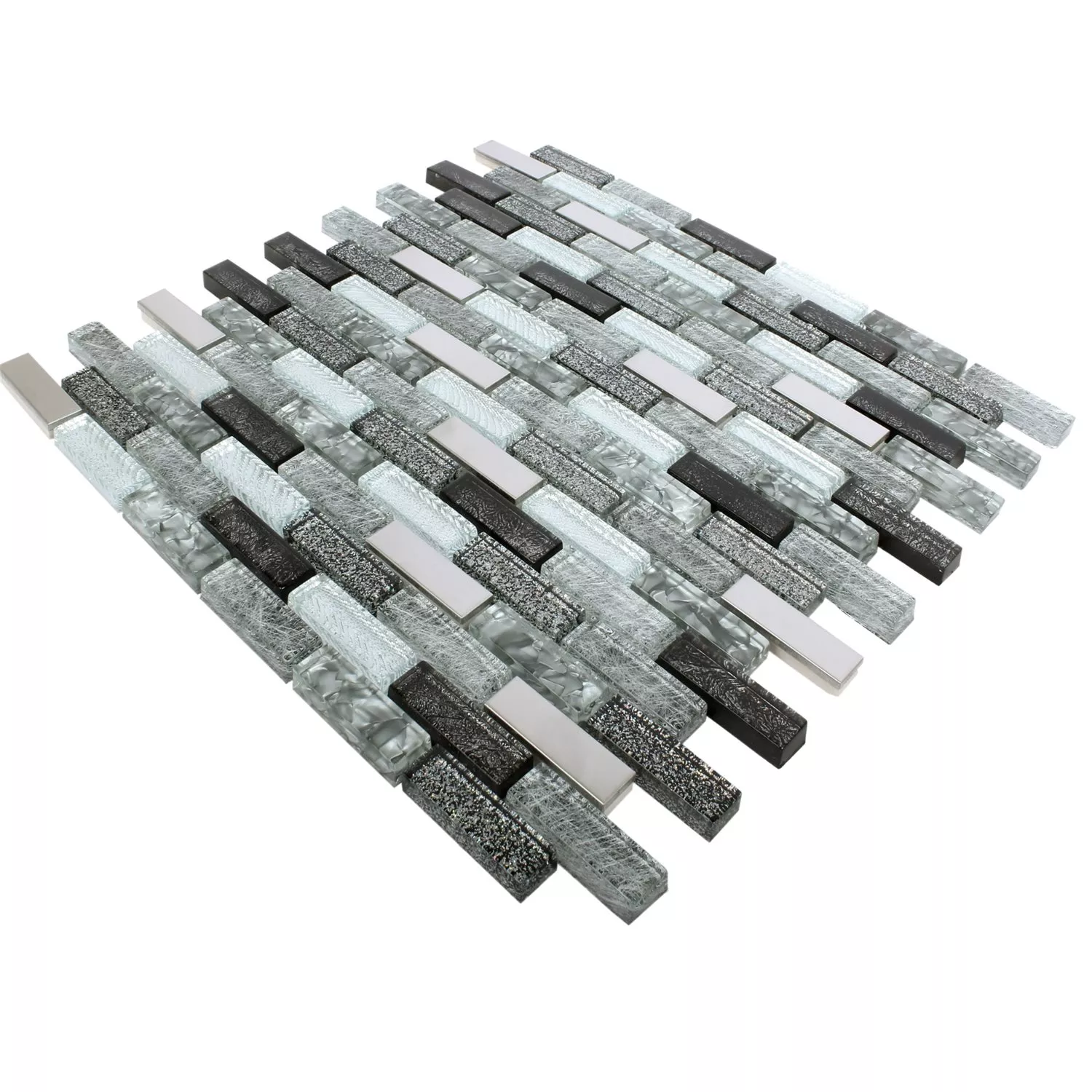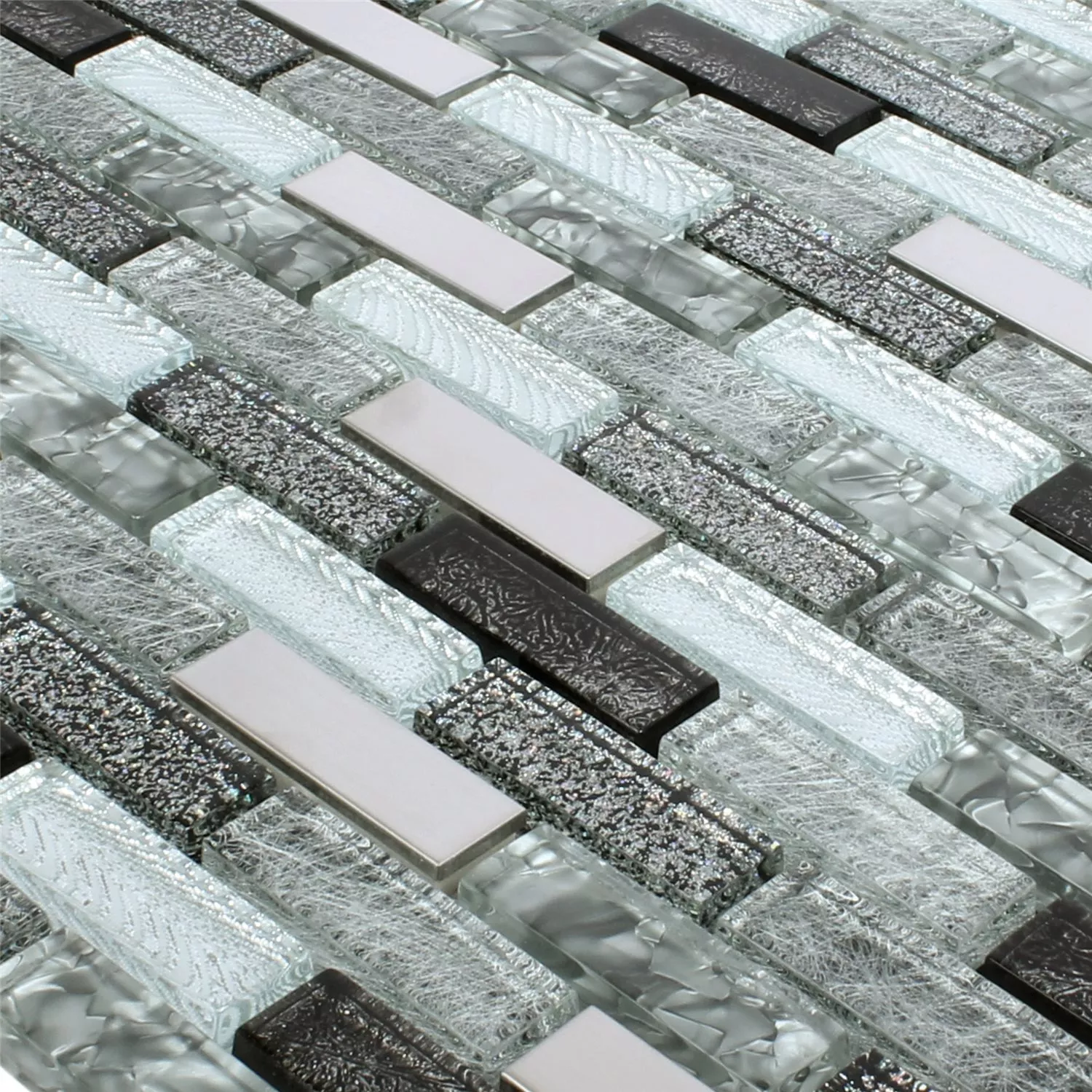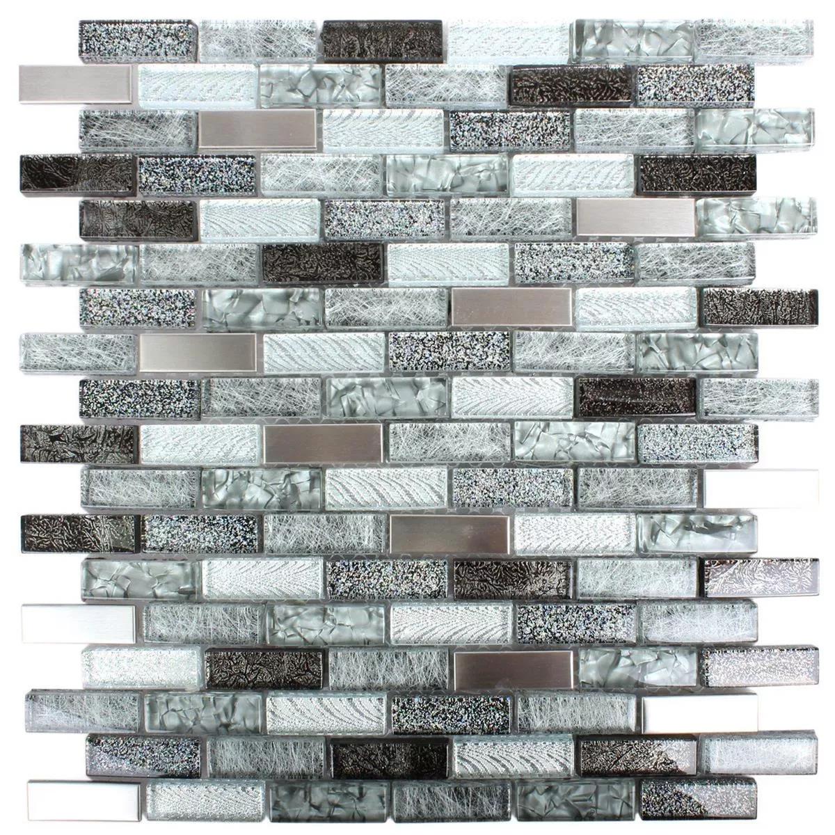 Obdélníkové kovové a skleněné mozaikové dlaždice jsou dokonalým materiálem pro opláštění stěn. K tomu je ideální černý a šedý povrch ze skla a kovu. Nejsou však určeny pro mokré oblasti.