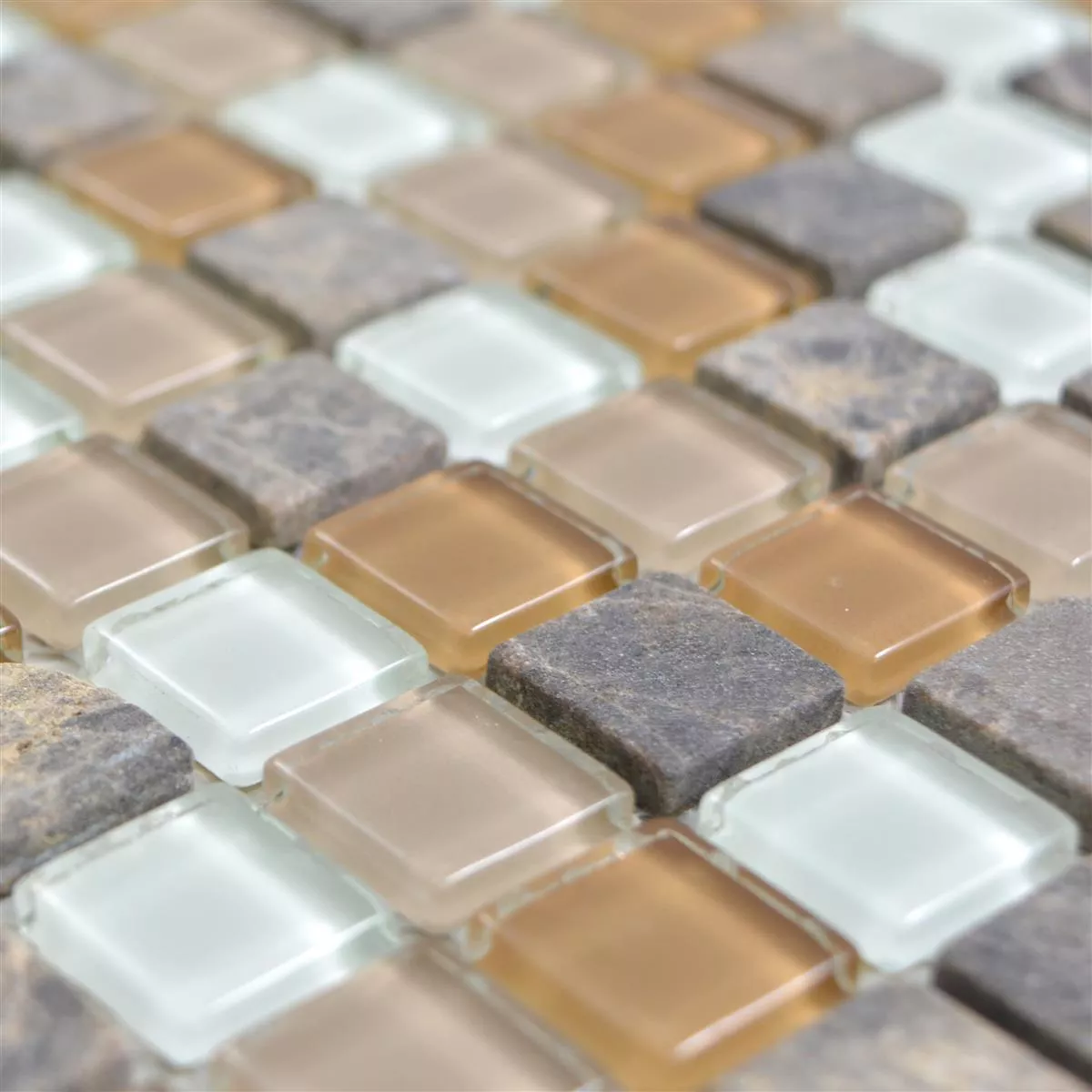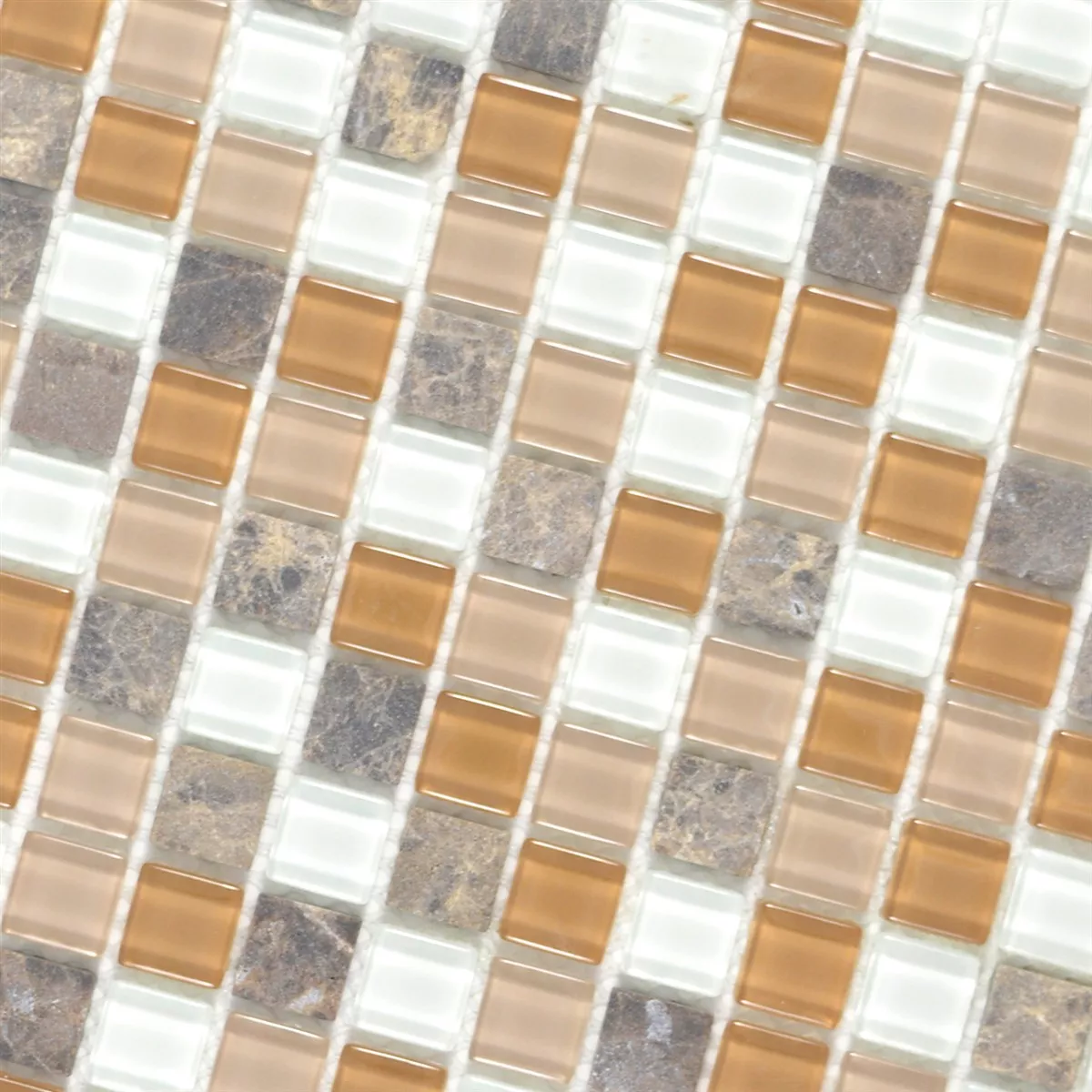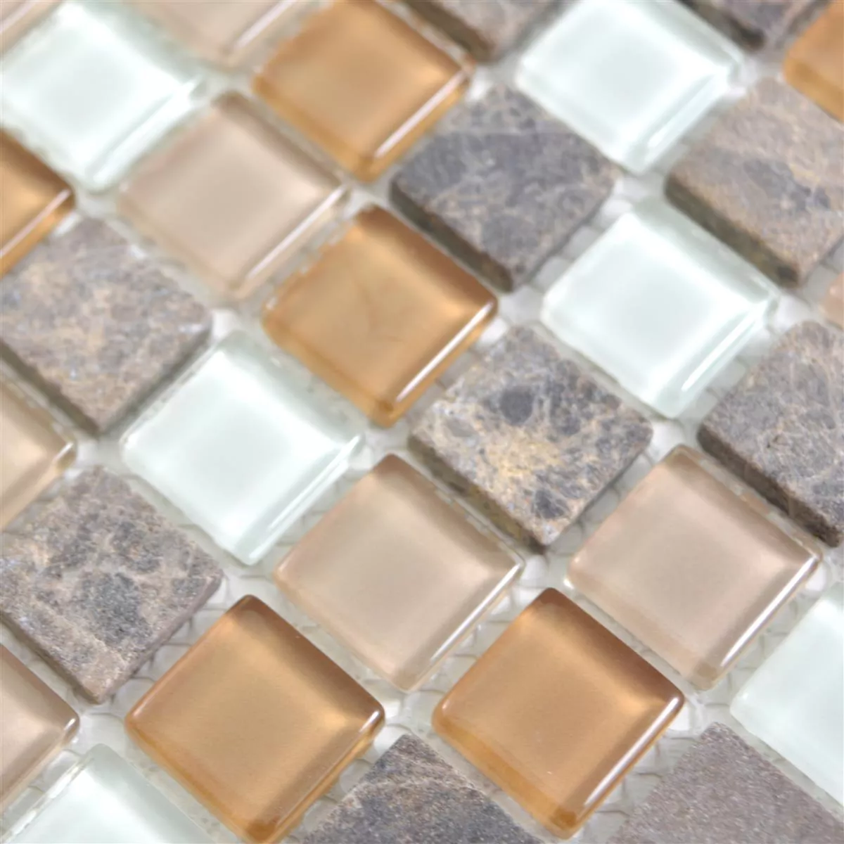 Glas Naturstein Mosaikfliesen Zekova Beige Braun Weiß