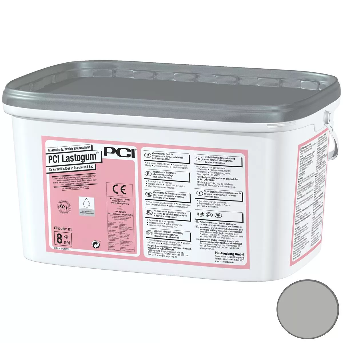 Gebrauchsfertige, wasserdichte Verbundabdichtung grau 8 kg von PCI unter Keramikbelägen für Boden und Wand im Innenbereich.