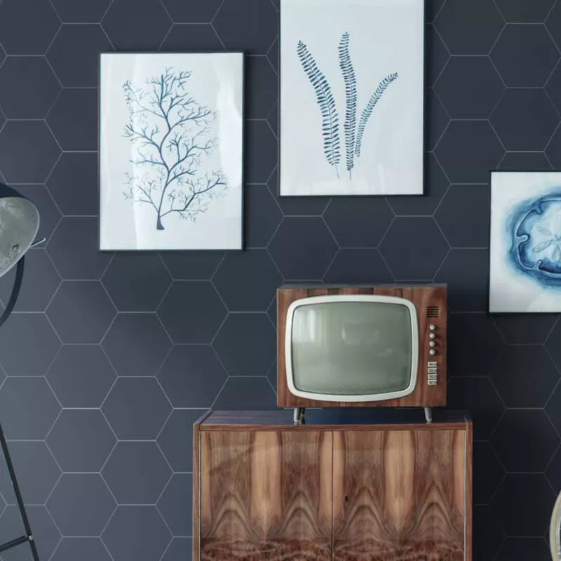 Floor Tiles Loire Blue Hexagon Structured 23x27 cm