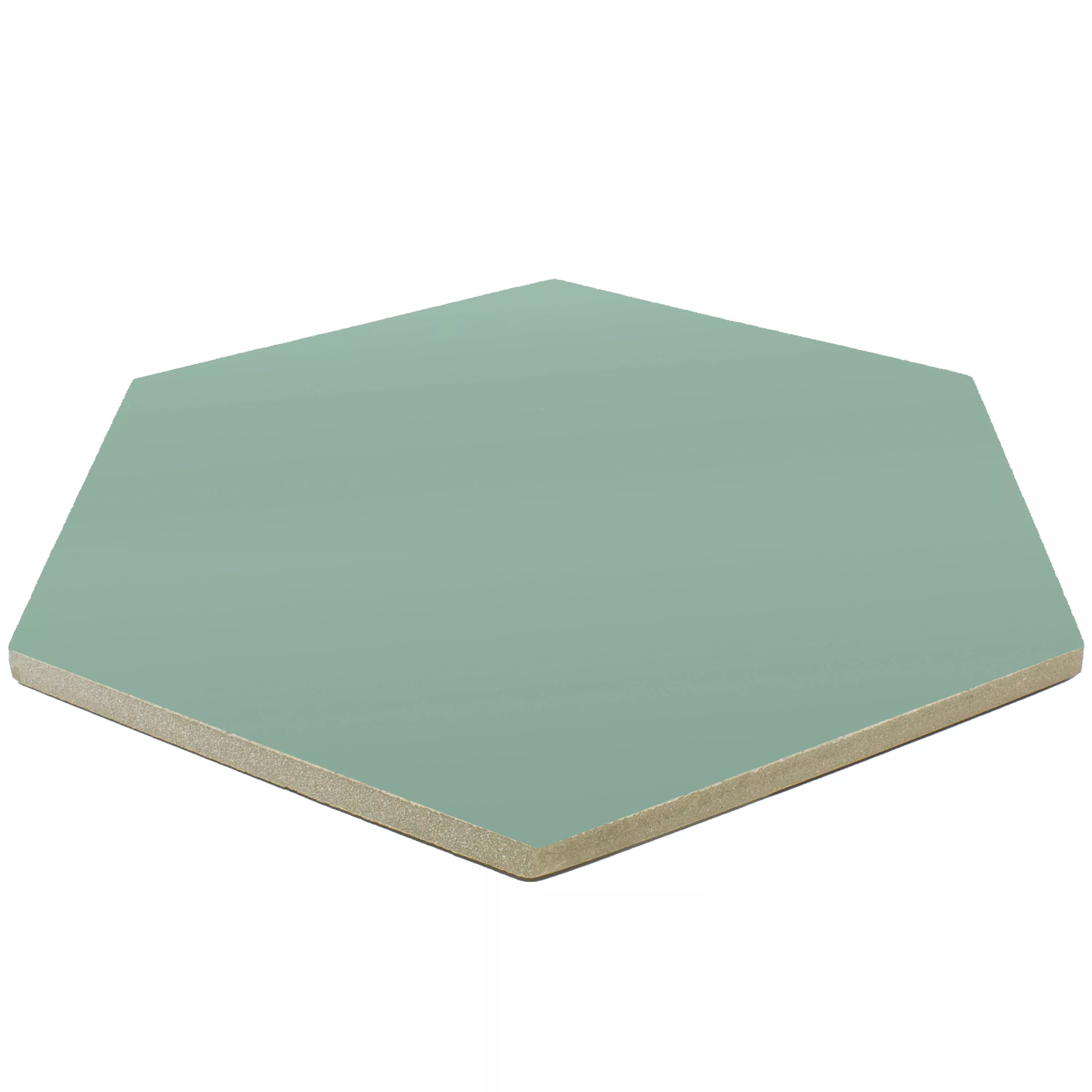 "Modena Hexagon Uni" porcelæns stentøjsfliser i et turkis sekskantdesign kombinerer æstetik med funktionalitet. Med en tykkelse på 10 mm og en skridsikkerhed R10 er de perfekte til våde områder, brusere, badeværelser, køkkener, stuer og indendørs områder.