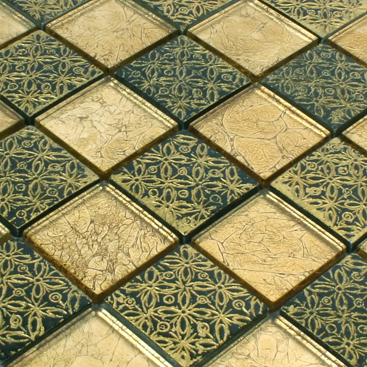 Prøve Mosaik Fliser Glas Natursten Friesia Guld