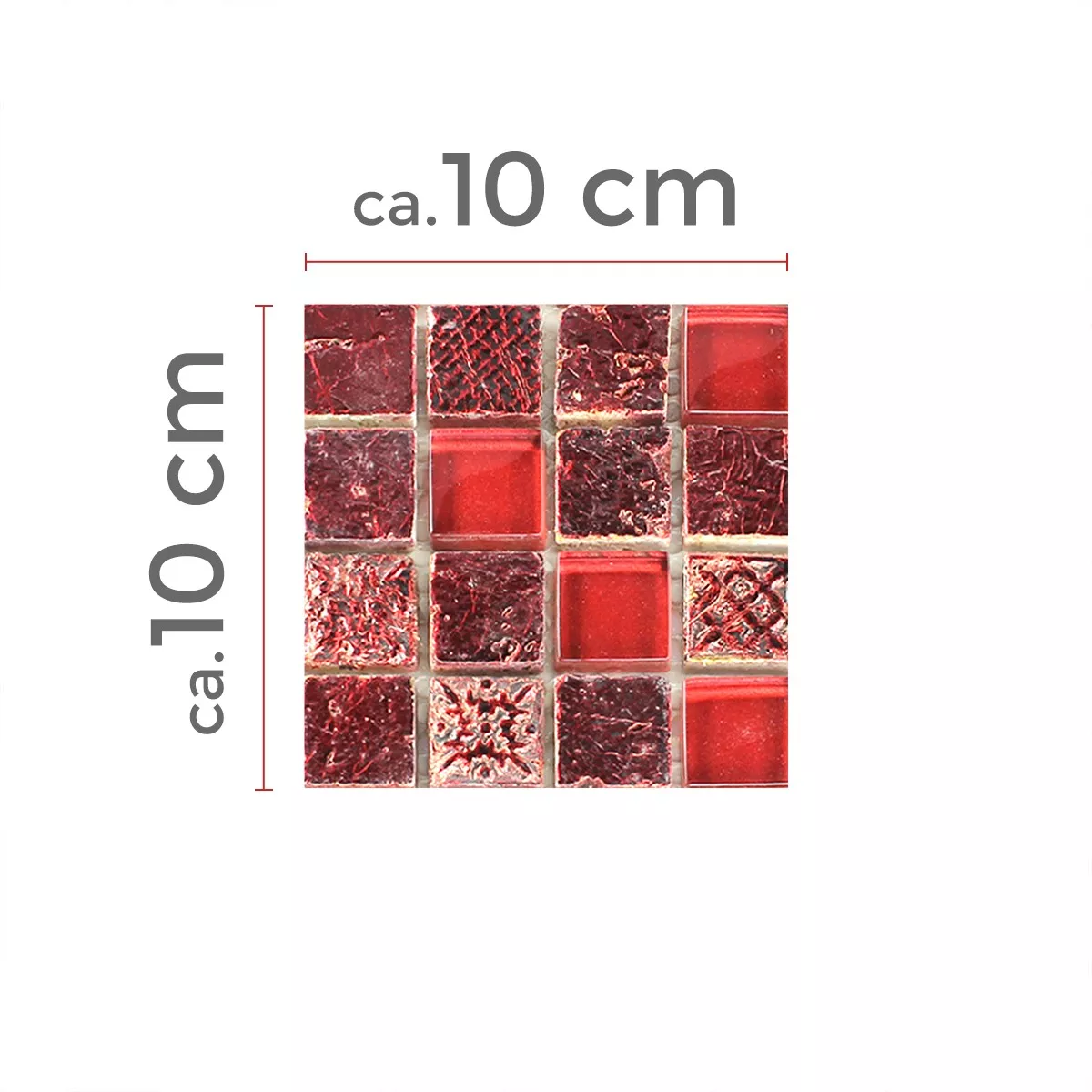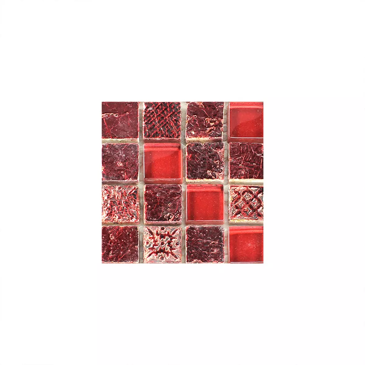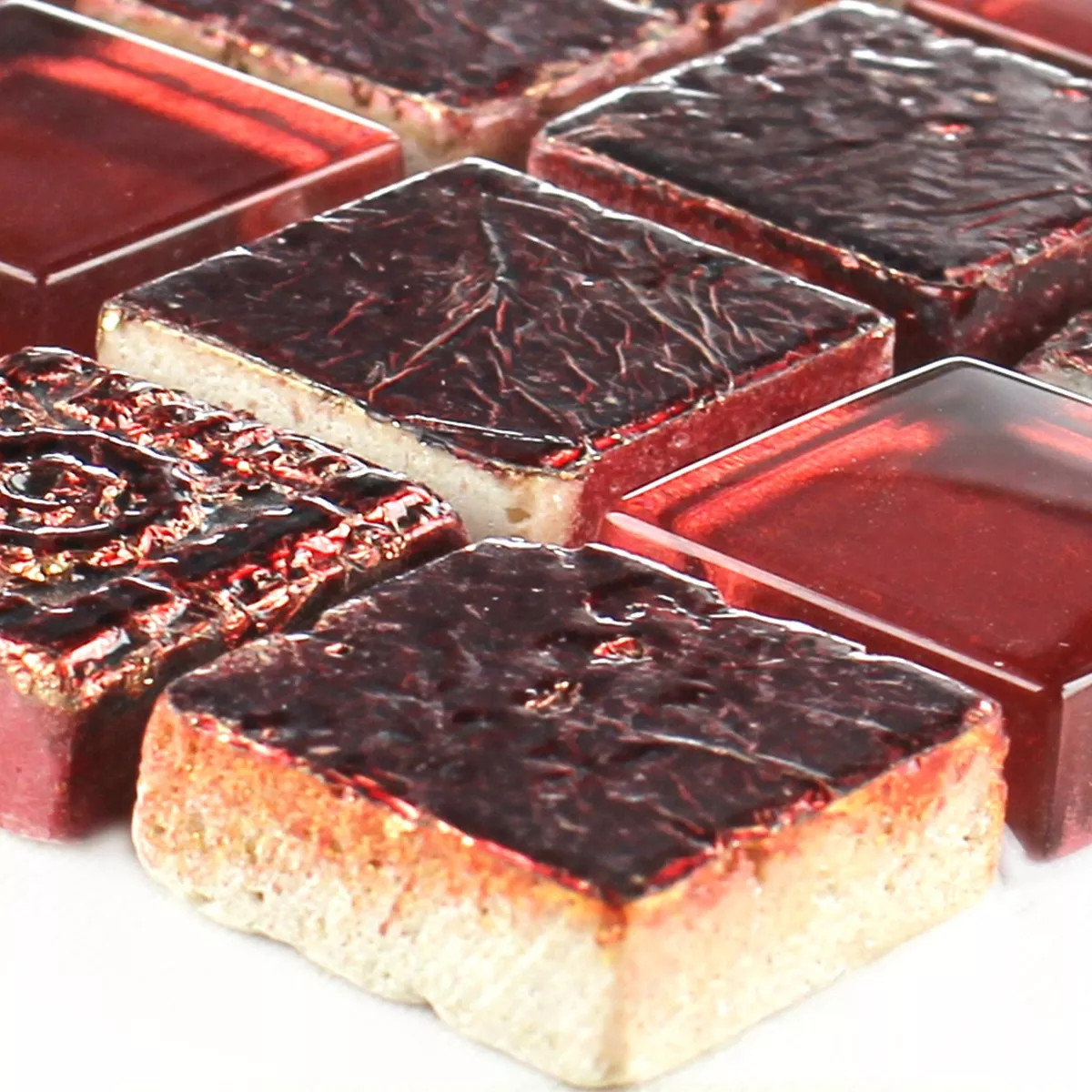 Prøve Mosaik Fliser Glas Kalksten Marmor Lava Rød Duo