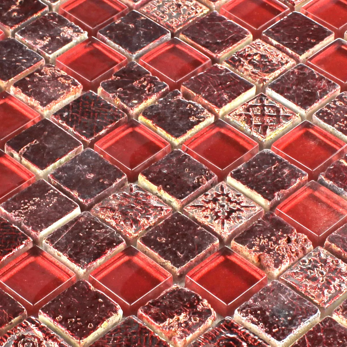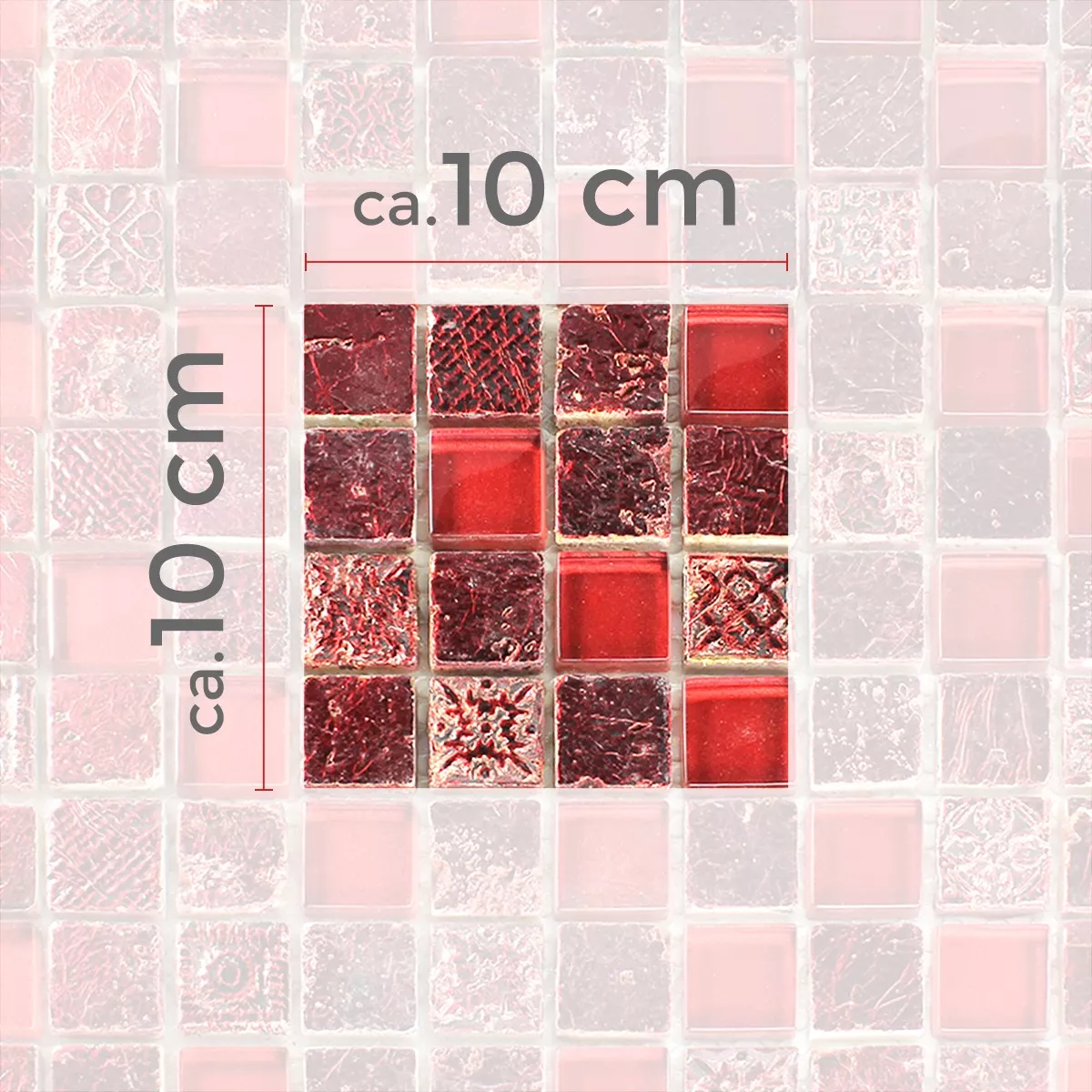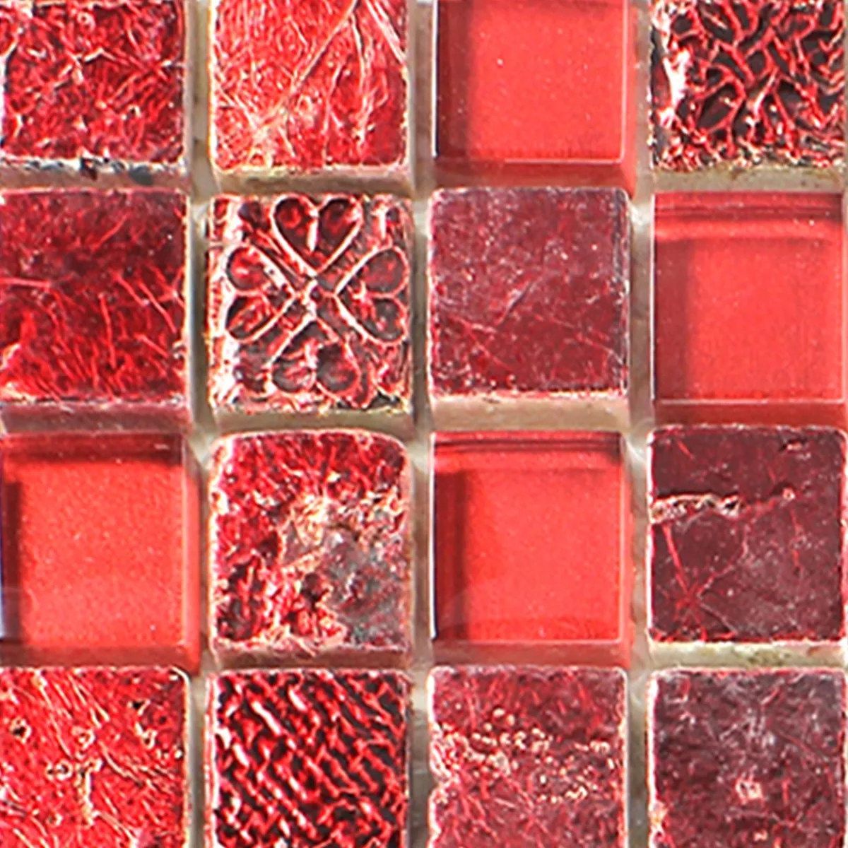 Prøve Mosaik Fliser Glas Kalksten Marmor Lava Rød Duo