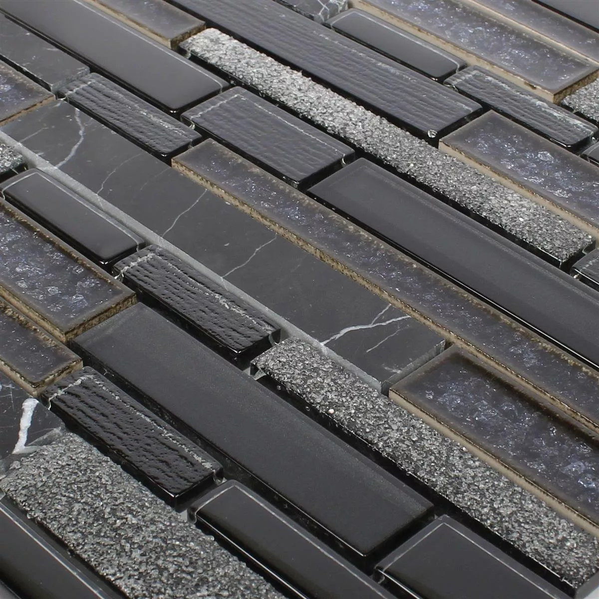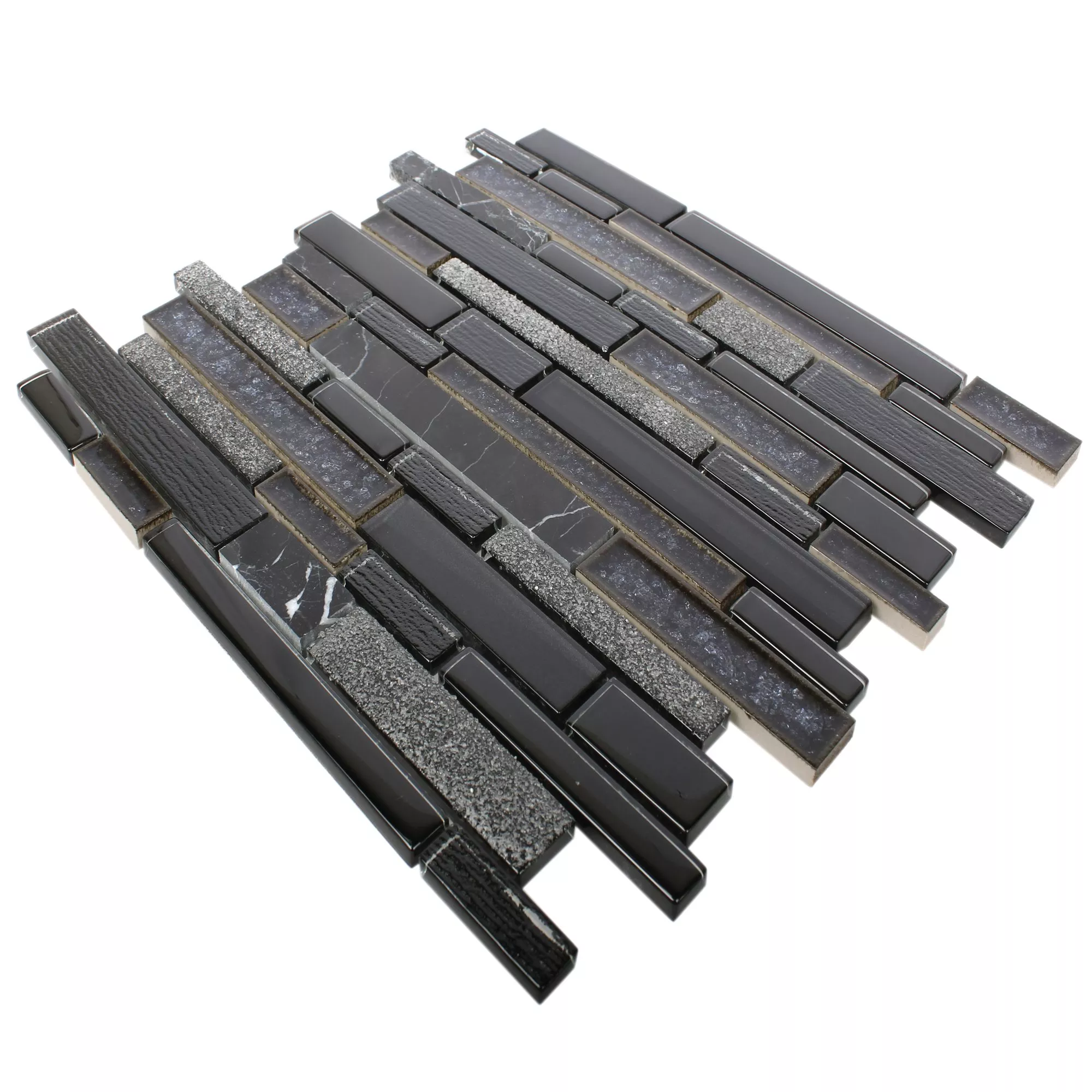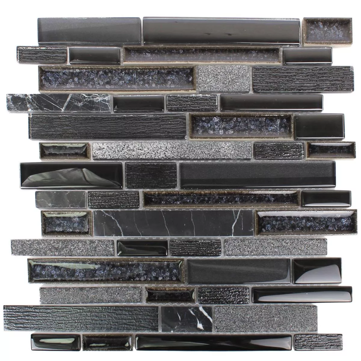 Glass Natural Stone Ceramic Mosaic Kozan Black