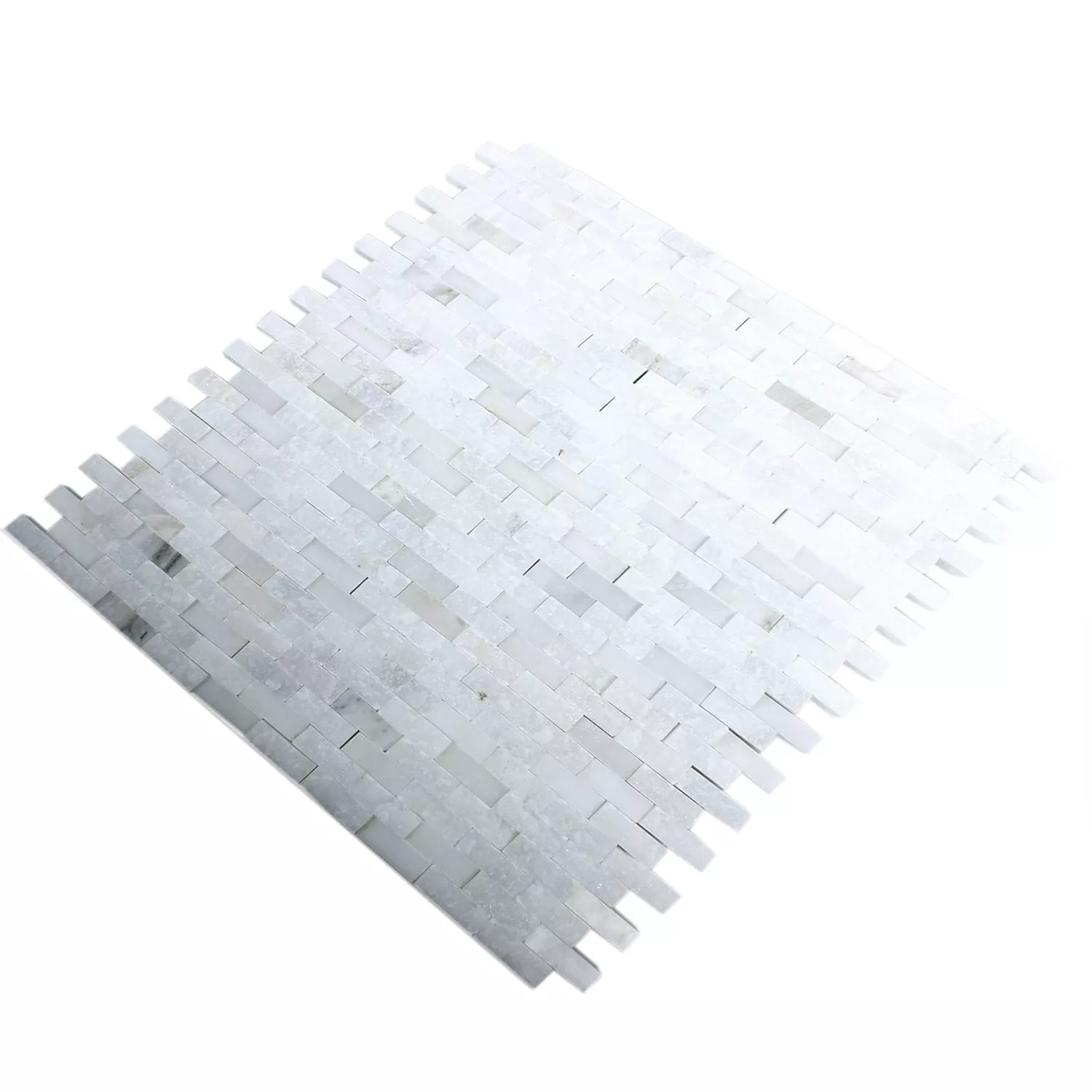 Marble continues to be a material that many people love because it is durable and perfect for the bathroom or even a kitchen. These white mosaic tiles are now made of marble and that alone makes the bathroom perfect. Real natural stone tiles are perfect for every bathroom because they not only look beautiful, but also improve the general indoor climate. This natural stone mosaic in white is on a mat and this can be easily attached. The buyer will be exactly right and can enjoy his new mosaic tiles for a very long time. The natural stone tiles are excellent as wall tiles in the bathroom. But they can also be installed in the living area. A natural stone mosaic like this will definitely appeal to the buyer and will appeal to him for the rest of his life. The tiles are perfect and look good. They are wall tiles that should be installed by a professional. This professional knows his stuff and understands laying. The mosaic tiles can also act as borders. The buyer will certainly make himself and his family very happy with this. The natural stone tiles are therefore definitely perfect.